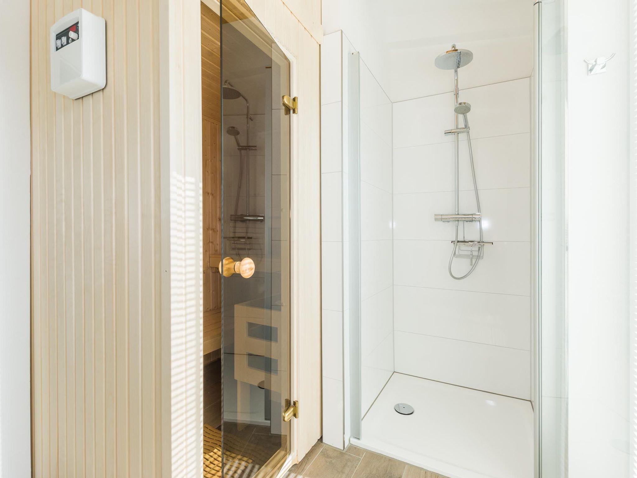Der offene Wohn-Essbereich ist geräumig und mit hochwertigen Möbeln ausgestattet. Die Küche lässt keine Wünsche offen - Backofen, Mikrowelle, Geschirrspüler u.v.m. Einen gemütlichen TV-Abend genießen Sie auf der modernen Sitzgarnitur. Auf dem nach Süd-West aufgerichteten Balkon genießen Sie die Abendsonne und lassen den Tag ausklingen. Das Schlafzimmer ist mit einem hochwertigen Boxspringbett ausgestattet. In das Dachgeschoss gelangen Sie über eine offene Holztreppe. Hier erwartet Sie ein weiteres Highlight: eine Sauna mit Ruheraum, Dusche und direktem Zugang zur 2. Terrasse. Ebenso auf der Etage ist das 2. Schlafzimmer mit 2 Einzelbetten (Boxspringbetten) und Flatscreen-TV sowie das 2. Bad mit WC.