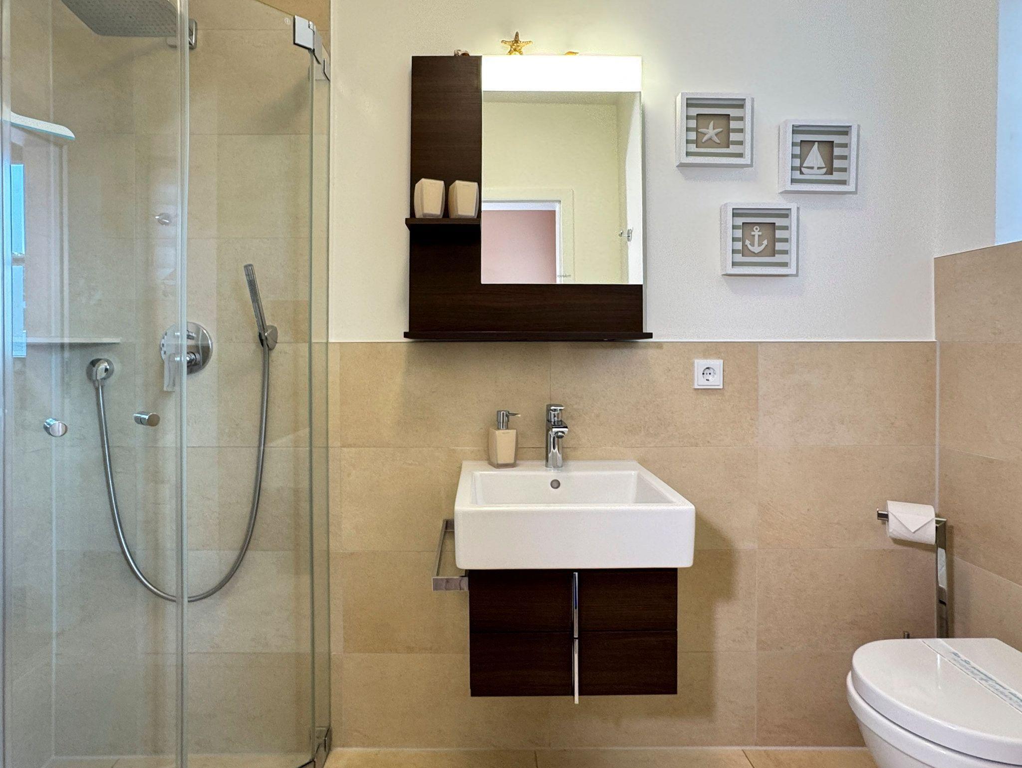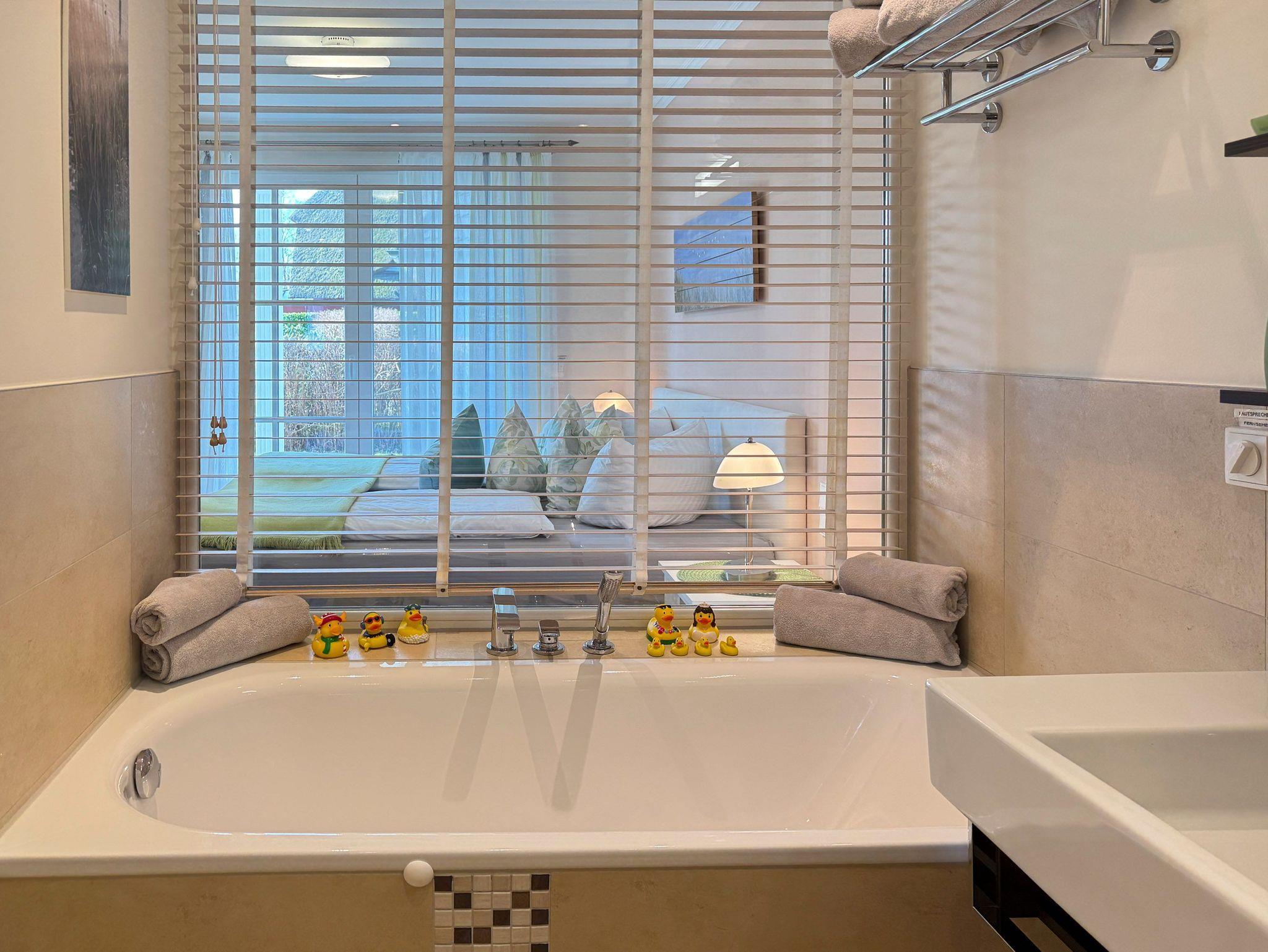 • Badezimmer: Zwei moderne Bäder eines mit Badewanne, ebenerdiger Dusche, WC, Handtuchwärmer und Haartrockner; das zweite Bad mit ebenerdiger Dusche, WC und Handtuchwärmer bieten zusätzlichen Komfort.