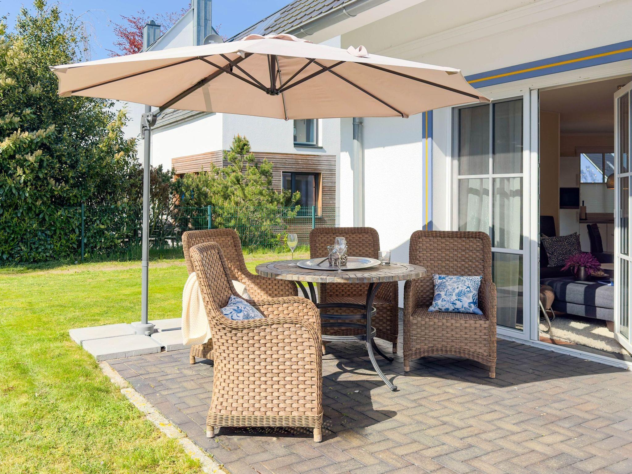 Die Südterrasse ist ein Ort der Ruhe ? umgeben von Garten und Wald, mit Vogelgezwitscher und frischer Meeresluft. Ob beim Frühstück in der Sonne, beim Lesen im Schatten oder bei einem Glas Wein am Abend: Hier können Sie einfach loslassen. Ihre Fahrräder sind im abschließbaren Depot mit E-Bike-Lademöglichkeit sicher untergebracht.