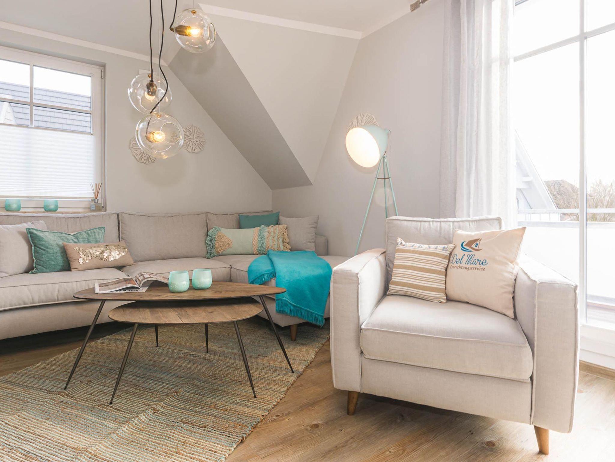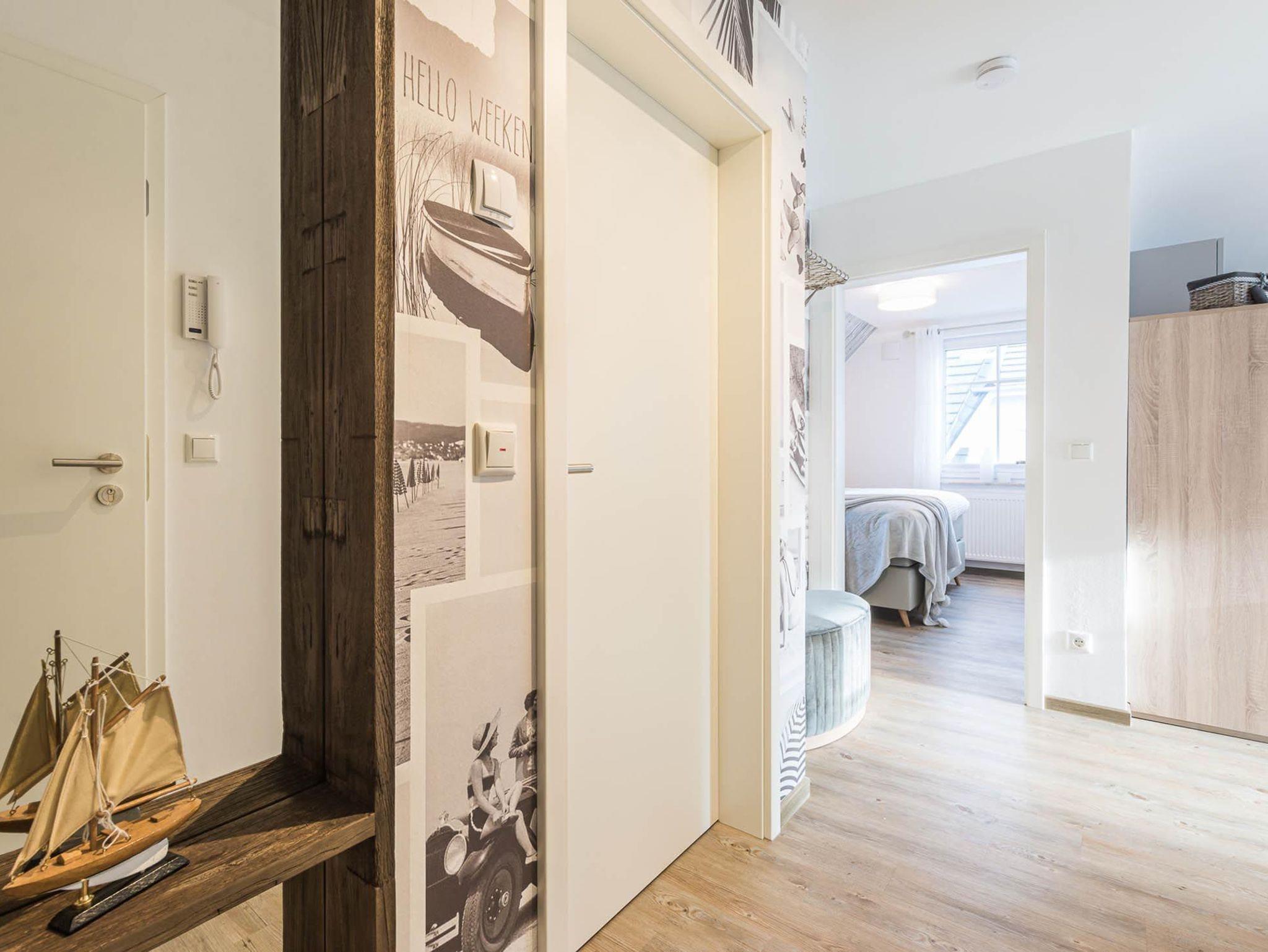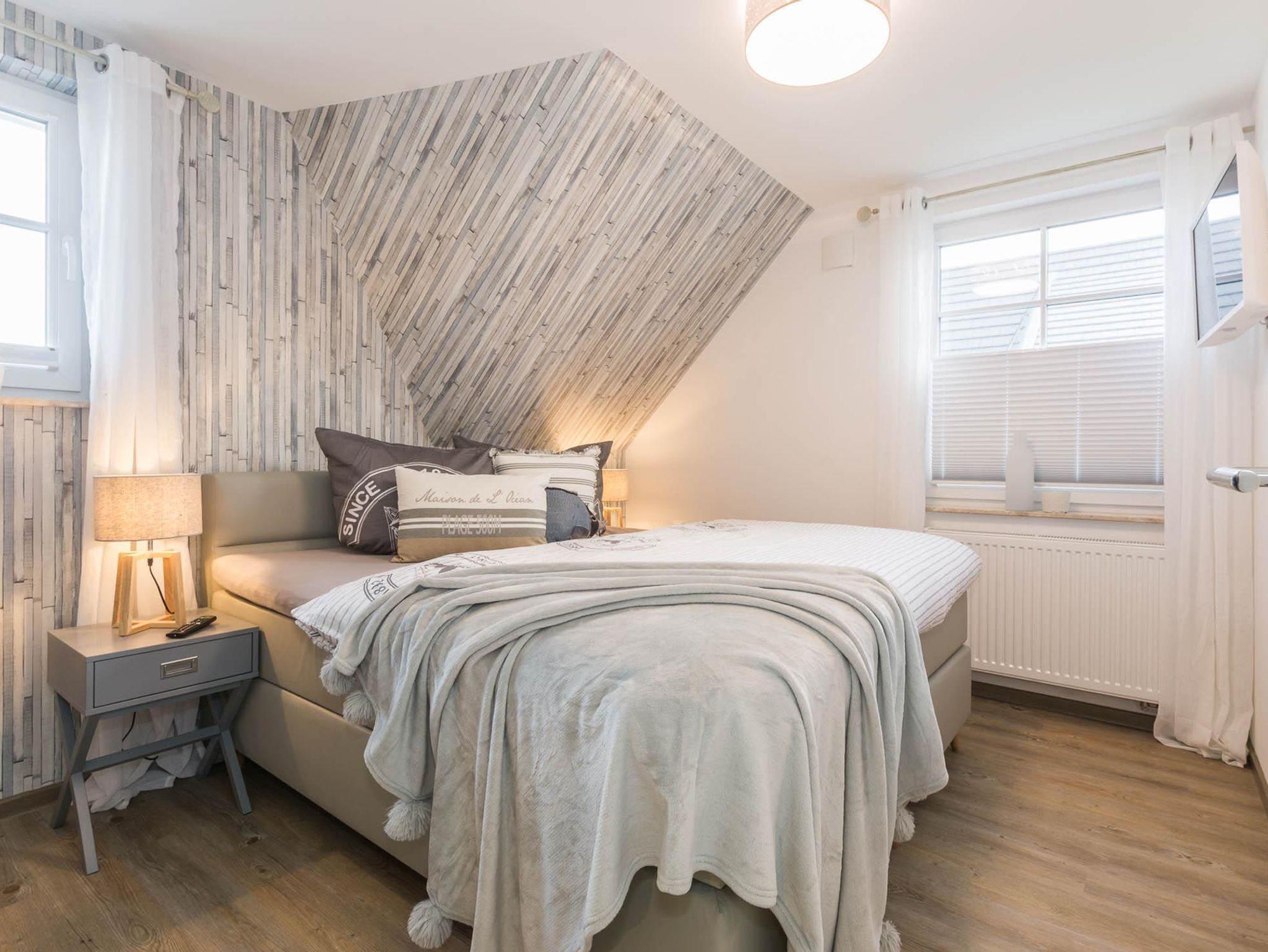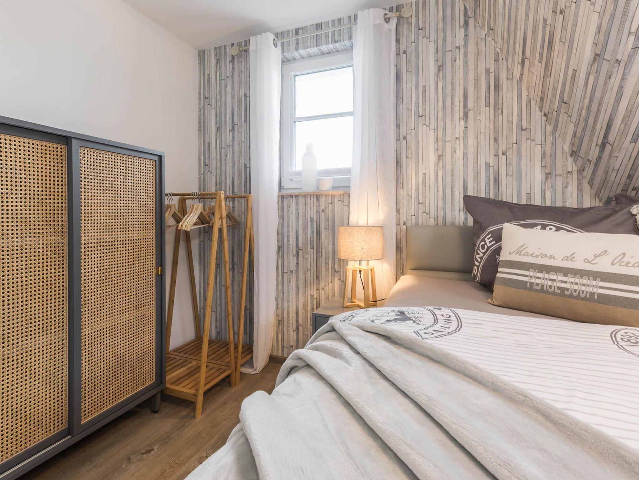 Die Flaschenpost hat 2 Schlafzimmer, das eine ist mit einem komfortablen Doppelbett, das andere im Dachgeschoss mit 2 bequemen Einzelbetten ausgestattet. Im offenen galerieartigen Dachgeschoss-Zimmer entsteht ein kleines Kinderparadies. Neben kleinen Sitzmöbel und Kindertisch dürfen sich die jungen Urlauber auf eine gemütliche Rückzugs-Koje freuen. Hier oben befindet sich auch die 5. Schlafmöglichkeit, ein Sessel lässt sich zur Liege ausklappen.