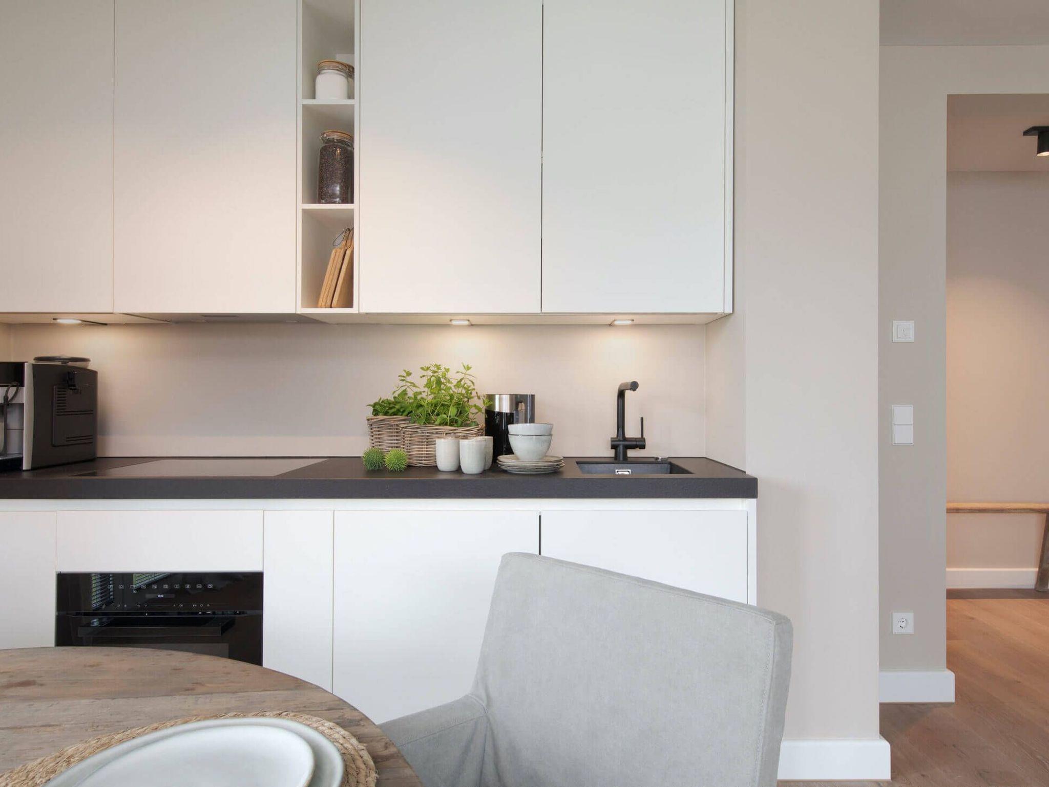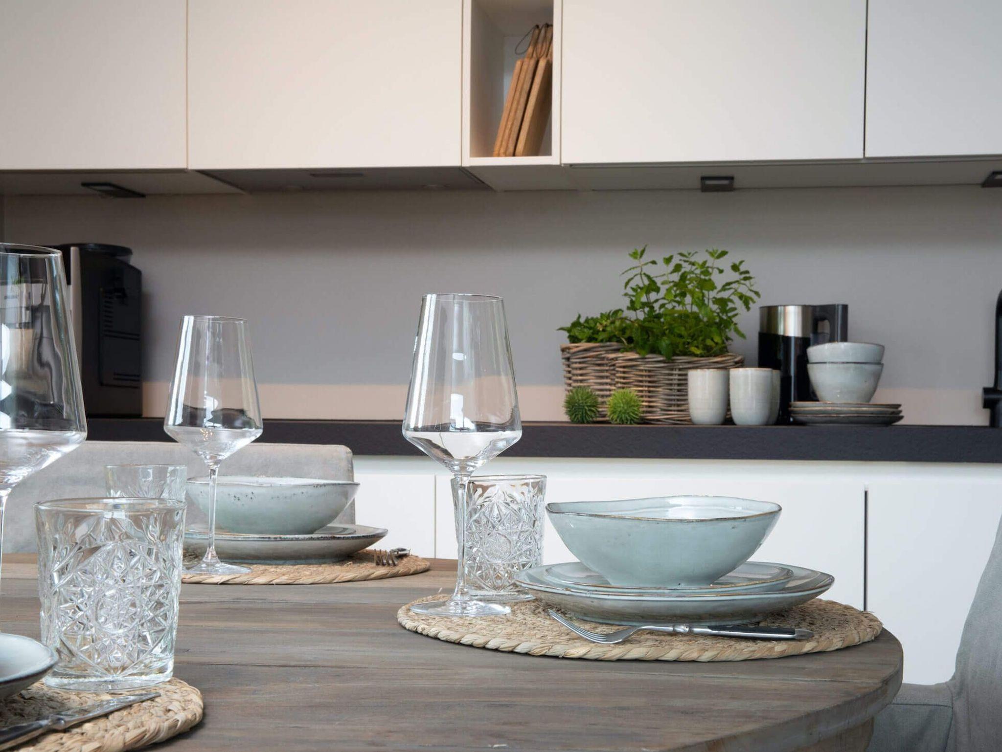 Die voll ausgestattete Küche bietet Ihnen die Möglichkeit, Ihre eigenen Mahlzeiten zuzubereiten. Sie finden alle notwendigen Geräte und Utensilien, um köstliche Gerichte zuzubereiten. Ein Esstisch steht ebenfalls zur Verfügung, so dass Sie Ihre Mahlzeiten bequem einnehmen können oder auf der großzügigen Süd-Terrasse.