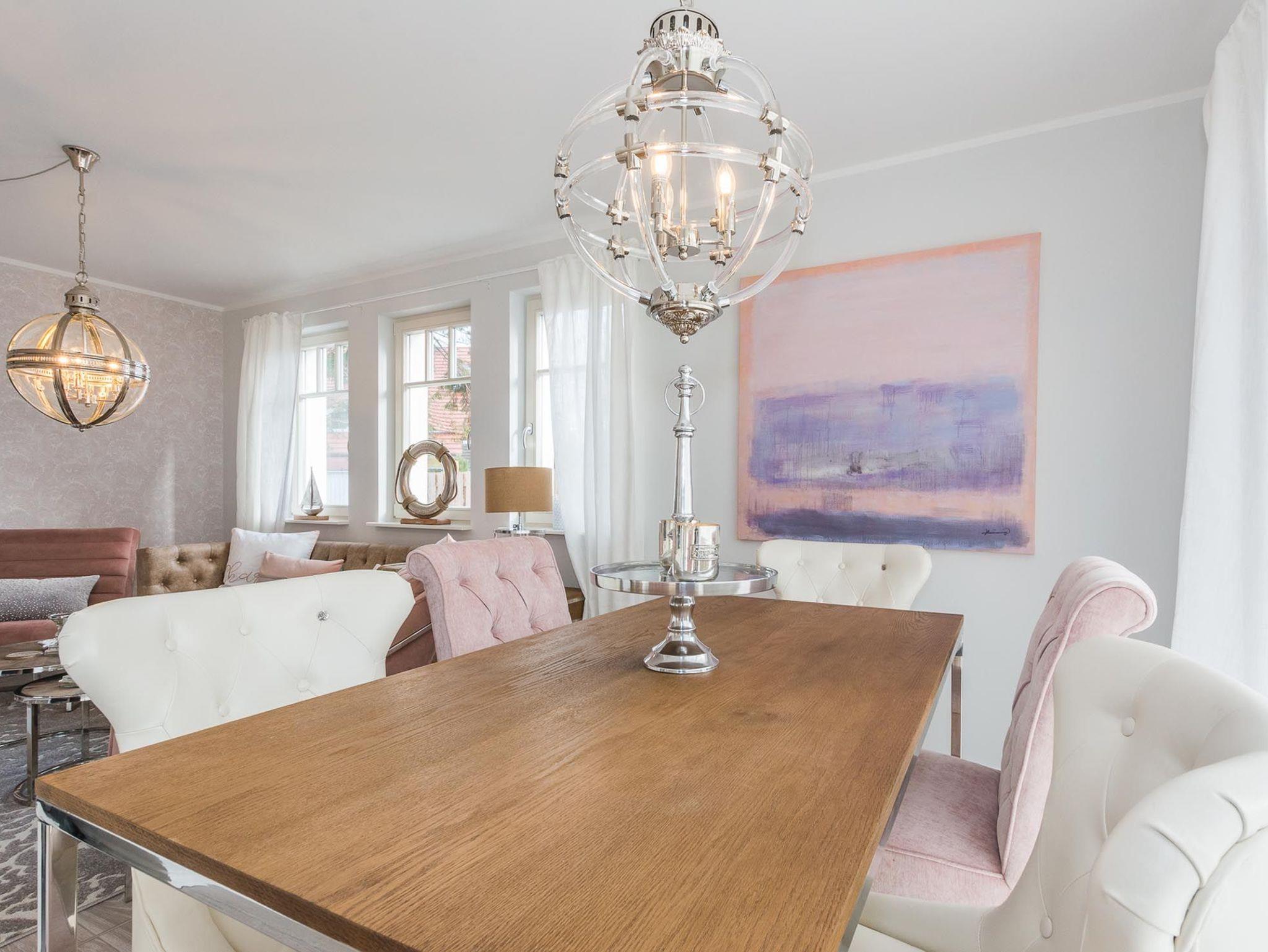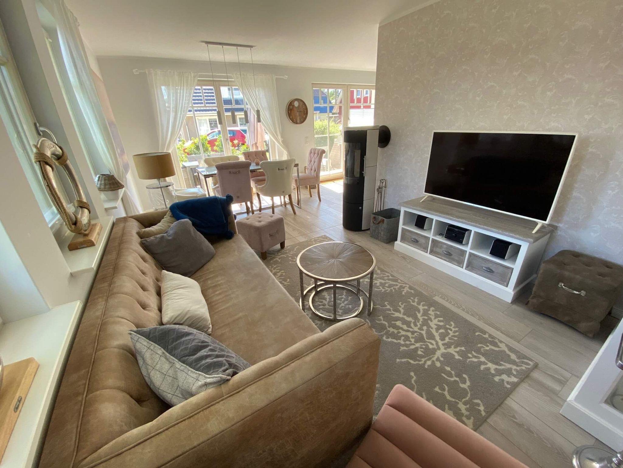 Die voll ausgestattete Küche, 2 Bäder (eines zusätzlich mit Wanne) und 3 Schlafzimmer bieten genügend Freiraum für alle. Der schöne, rustikale Esstisch im Wohnbereich lädt zum geselligen Speisen und Beisammensitzen ein.