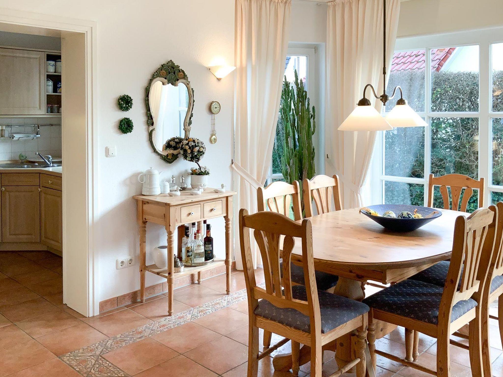 • Großzügiger Wohn- und Essbereich im Landhausstil mit Kaminofen für behagliche Abende
