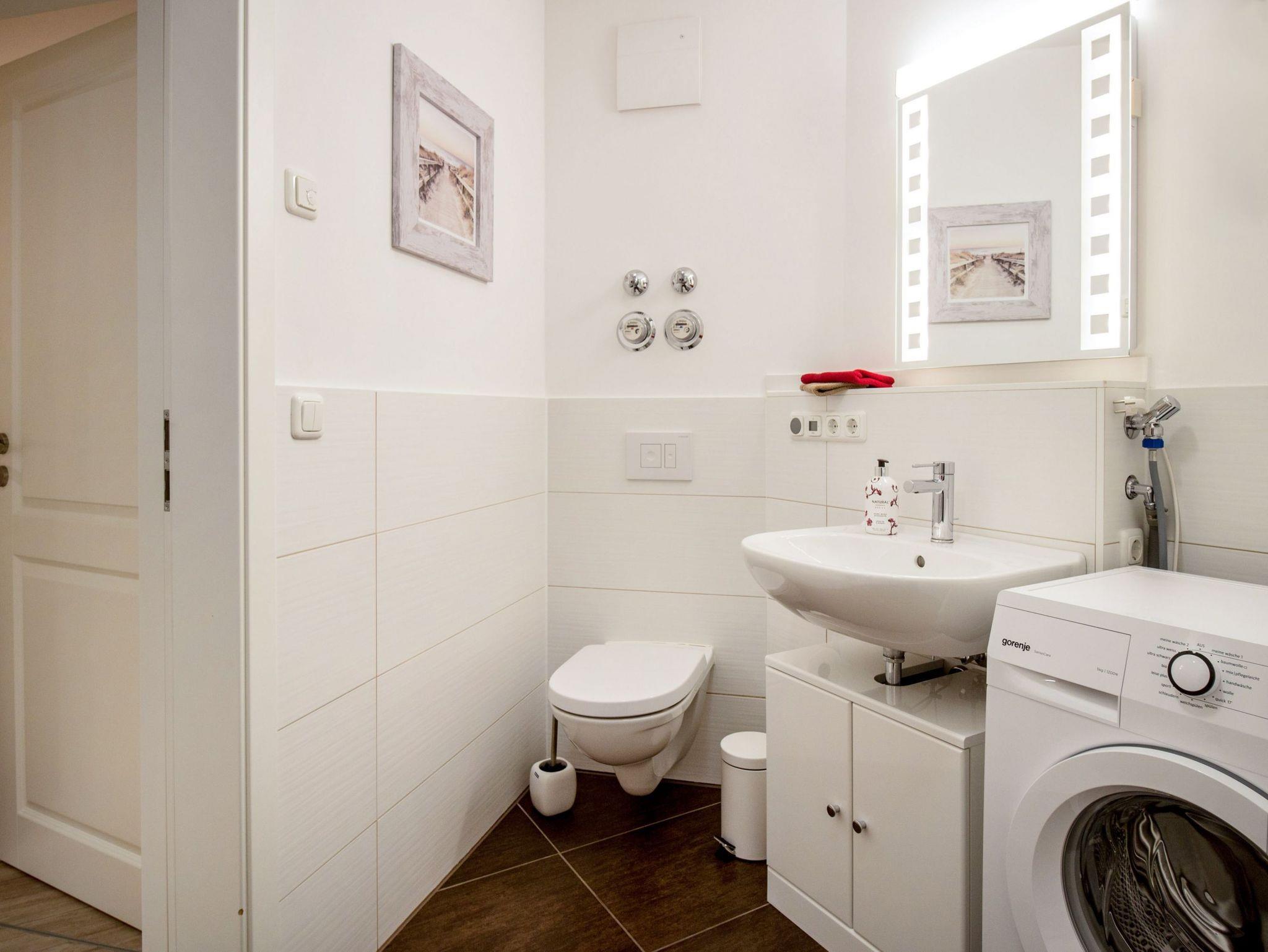 Ein separater Eingang führt Sie in die liebevoll eingerichtete Ferienwohnung, die modernen Wohnkomfort mit dem maritimen Charme von Zingst vereint. Helle Räume, sanfte Farben und hochwertige Materialien schaffen eine Atmosphäre, in der Sie sich sofort wohlfühlen. Die beiden Schlafzimmer bieten ausreichend Platz und Ruhe für erholsame Nächte, während das elegante Badezimmer mit Regendusche und Fußbodenheizung für angenehmen Komfort sorgt auch an kühleren Tagen.