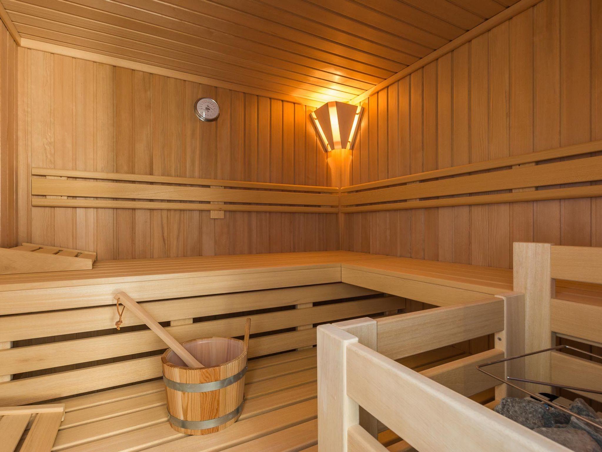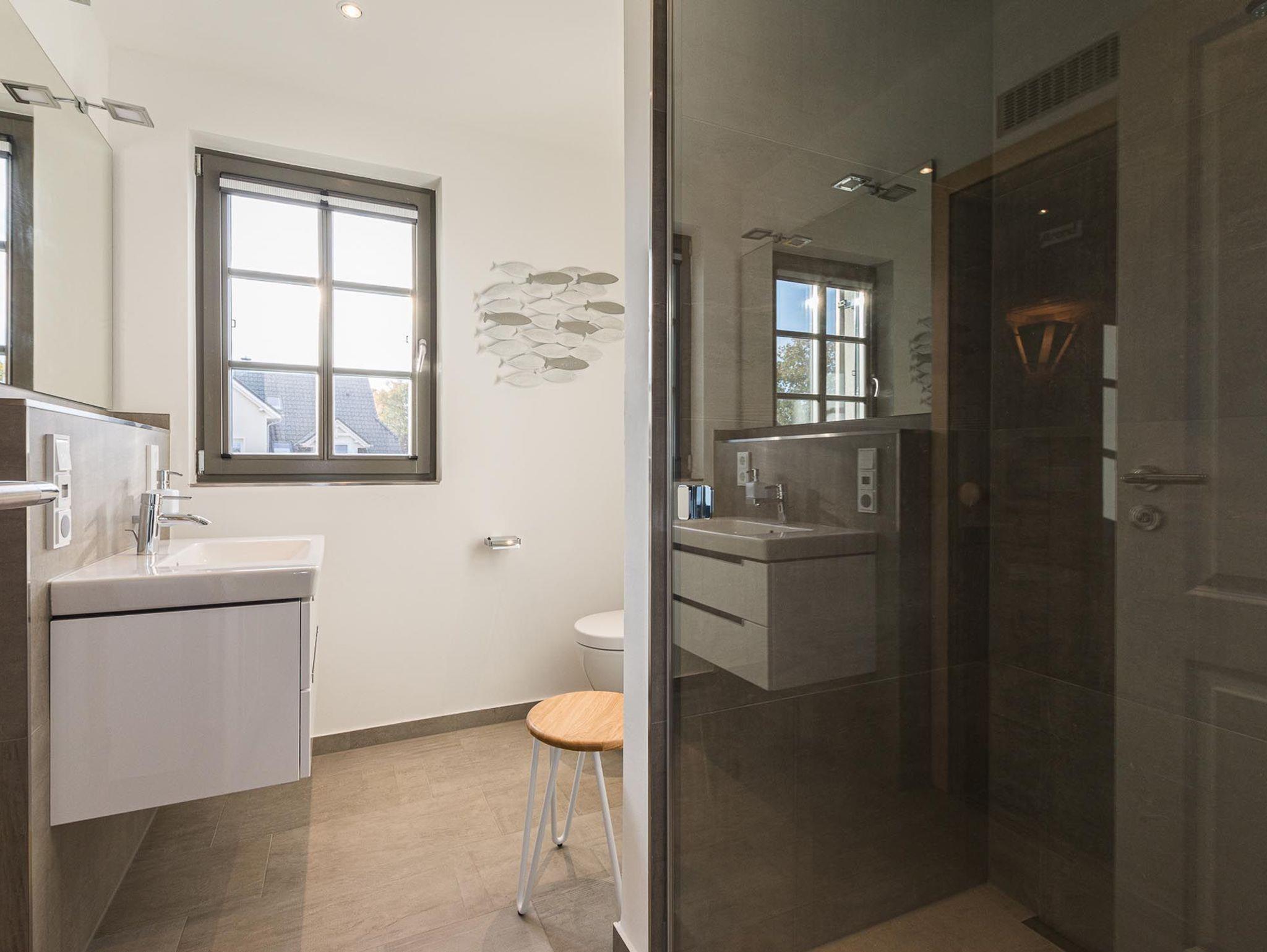Im Obergeschoss befinden sich 2 Schlafzimmer sowie ein Badezimmer mit integrierter Sauna.