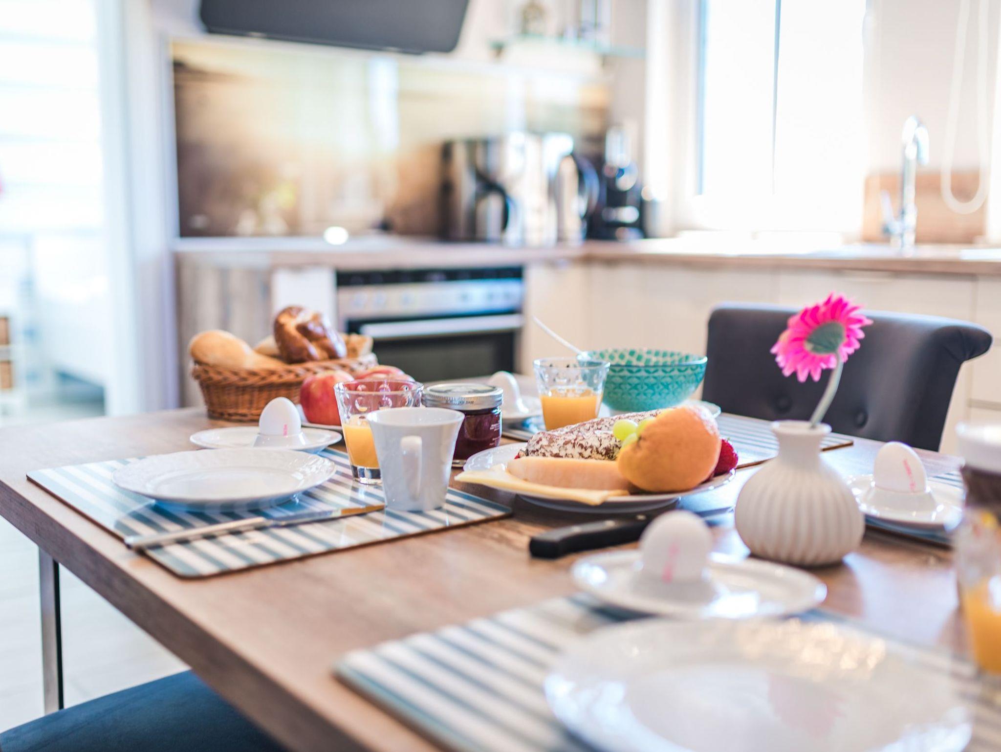 Kostenloses W-LAN, ein Parkplatz direkt am Haus und ein abschließbarer Fahrradraum mit einer Steckdose zum Laden Ihrer E-Bikes Ihnen zur Verfügung.