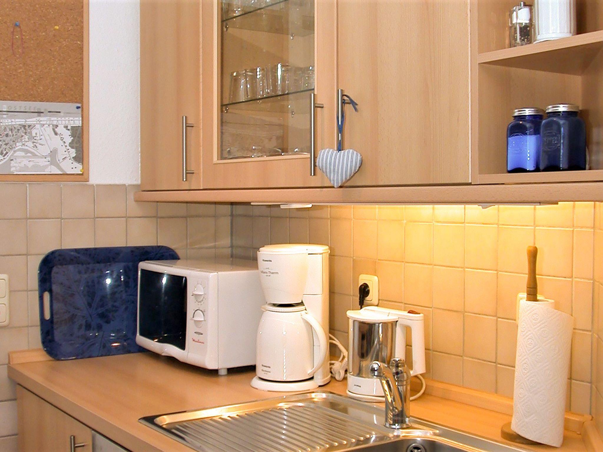 Die Ferienwohnung Seewolf bietet mit ihren 45 m² ausreichend Platz für 2 Personen und ein Kleinkind bis 3 Jahre. Das Schlafzimmer mit einem Doppelbett (160x200; getrennte Matratzen) verspricht dir erholsame Nächte und bietet einen geräumigen Kleiderschrank sowie einen TV für entspannte Abende. Im Wohnzimmer lädt ein gemütliches Sofa zum Verweilen ein, während ein weiterer TV für Unterhaltung sorgt. Die offene Küche ist mit einem Backofen, Geschirrspüler, Kühlschrank, Toaster und einer Mikrowelle sowie Kaffeemaschine ausgestattet und ermöglicht gemeinsame Kochabende oder entspannte Frühstücke am Küchentresen. Ein Bad mit Dusche und WC sorgt für Komfort und Privatsphäre während deines Aufenthalts. Der Flur begrüßt dich mit einer Garderobe und einem Spiegel und die Fußbodenheizung verbreitet zu jeder Jahreszeit angenehme Wärme. Auf der Terrasse kannst du dich im Strandkorb zurücklehnen und ein Buch lesen, den Grill für einen BBQ-Abend anwerfen oder unter der Markise mit weiteren Sitzmöglichkeiten ein schattiges Plätzchen finden.