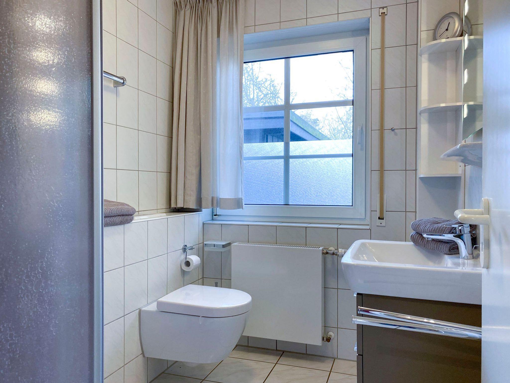 • Modernes Badezimmer mit Dusche, WC und Haartrockner