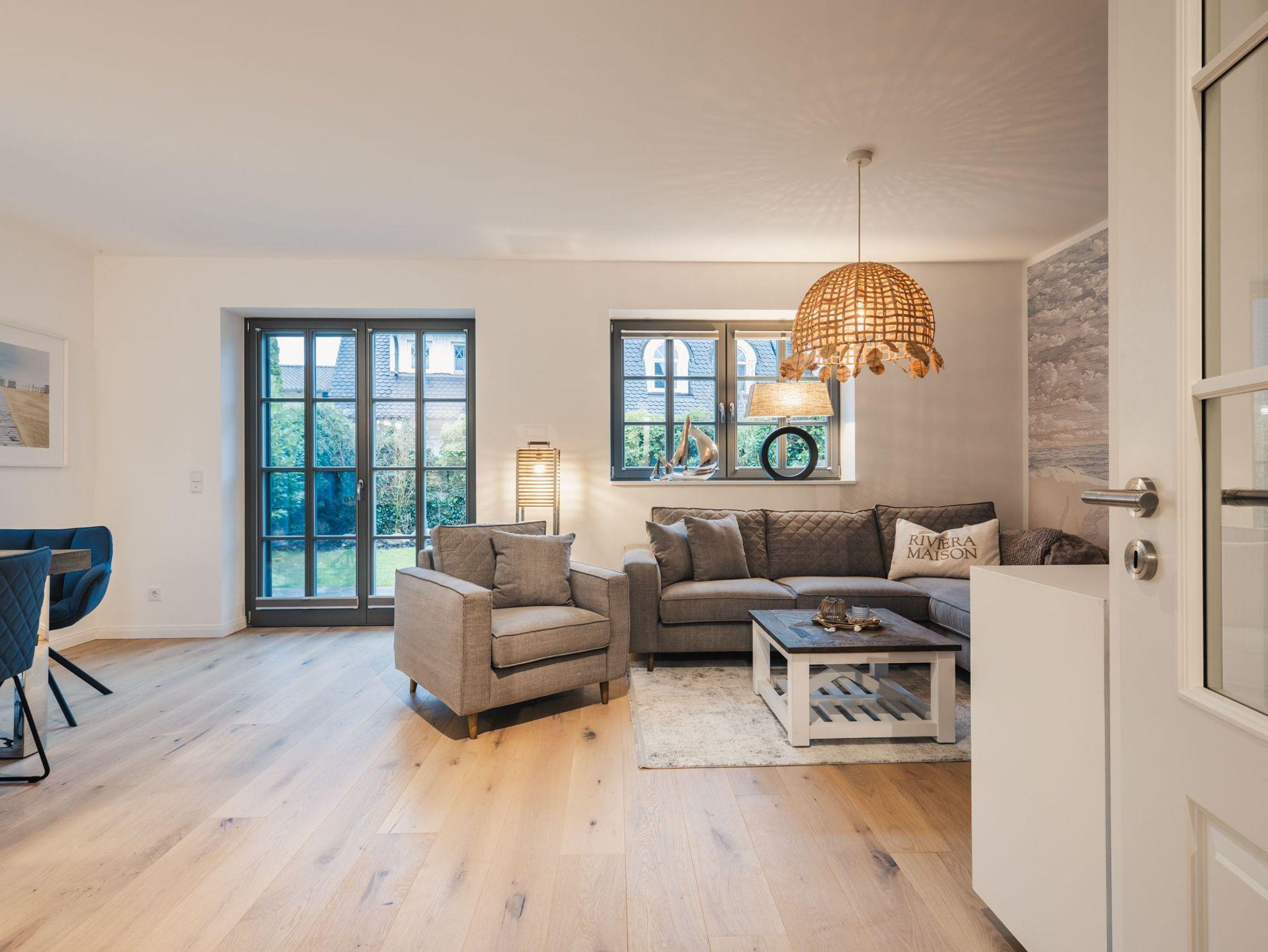 Das Ferienhaus ist gemütlich und komfortabel eingerichtet, um Ihren Aufenthalt so angenehm wie möglich zu gestalten. Der offene Wohnbereich verfügt über eine einladende Sofalandschaft, einen Esstisch und große Fenster, die viel Tageslicht hereinlassen. Die Küche ist mit einer Kochinsel versehen[nbsp] sowie mit modernen Markengeräten wie einem Geschirrspüler, Backofen und einer Kaffee Kapselmaschine.