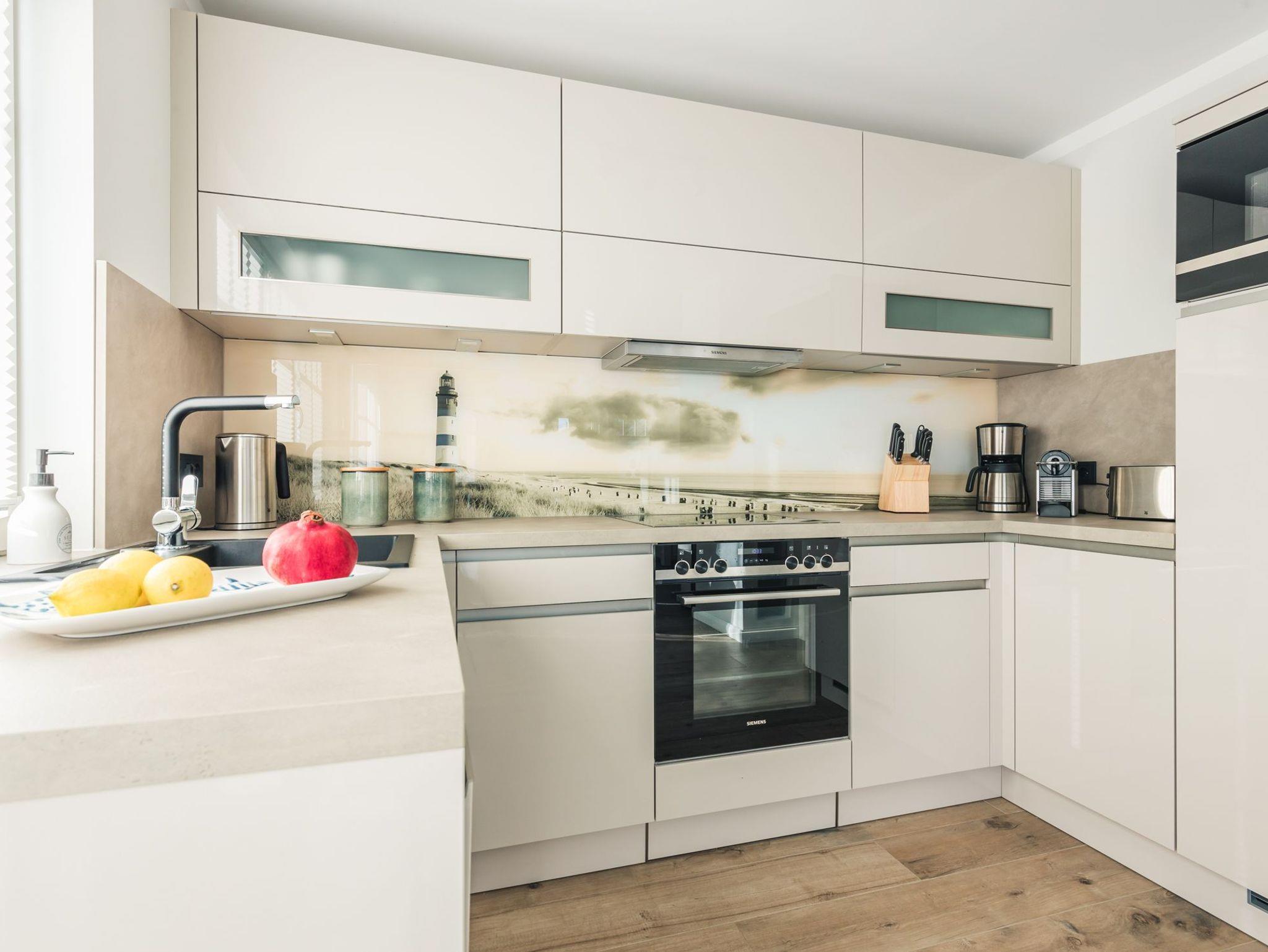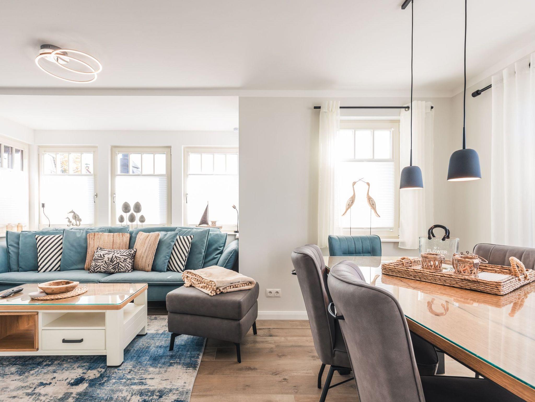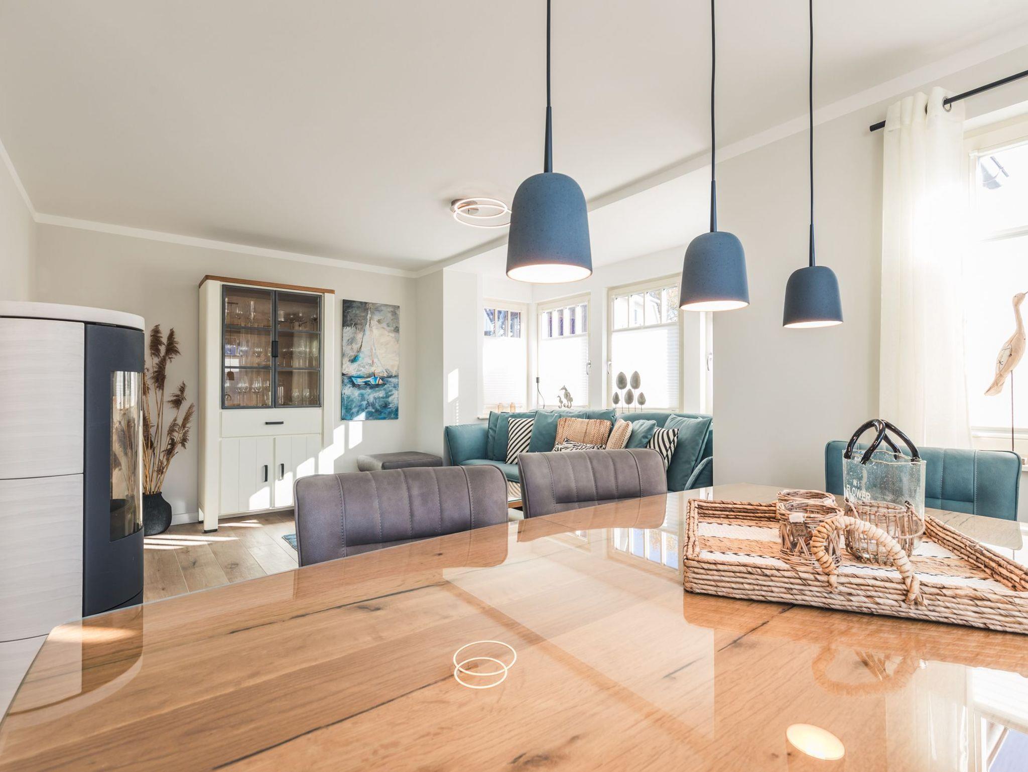 Der große Esstisch lädt zu gemütlichen Abenden im Kreise der Freunde oder Familie ein. Die offene Küche ist mit einem Geschirrspüler, Induktionsherd, Backofen, Filterkaffeemaschine, Nespresso Kapselmaschine, Toaster, Wasserkocher, einer Mikrowelle und einem geräumigen Kühlschrank mit Gefrierfach perfekt ausgestattet.