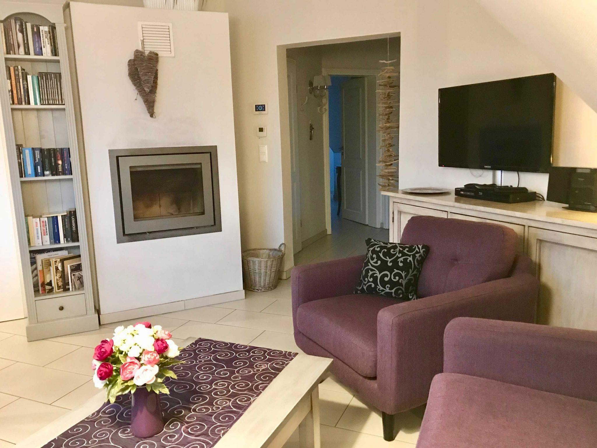 Den Abend lassen Sie gemütlich am brennende Kamin im Wohnraum mit Sofa, Sessel und TV ausklingen und dann gehts ab, in eines der Beiden gemütlichen Schlafzimmer mit TV.
