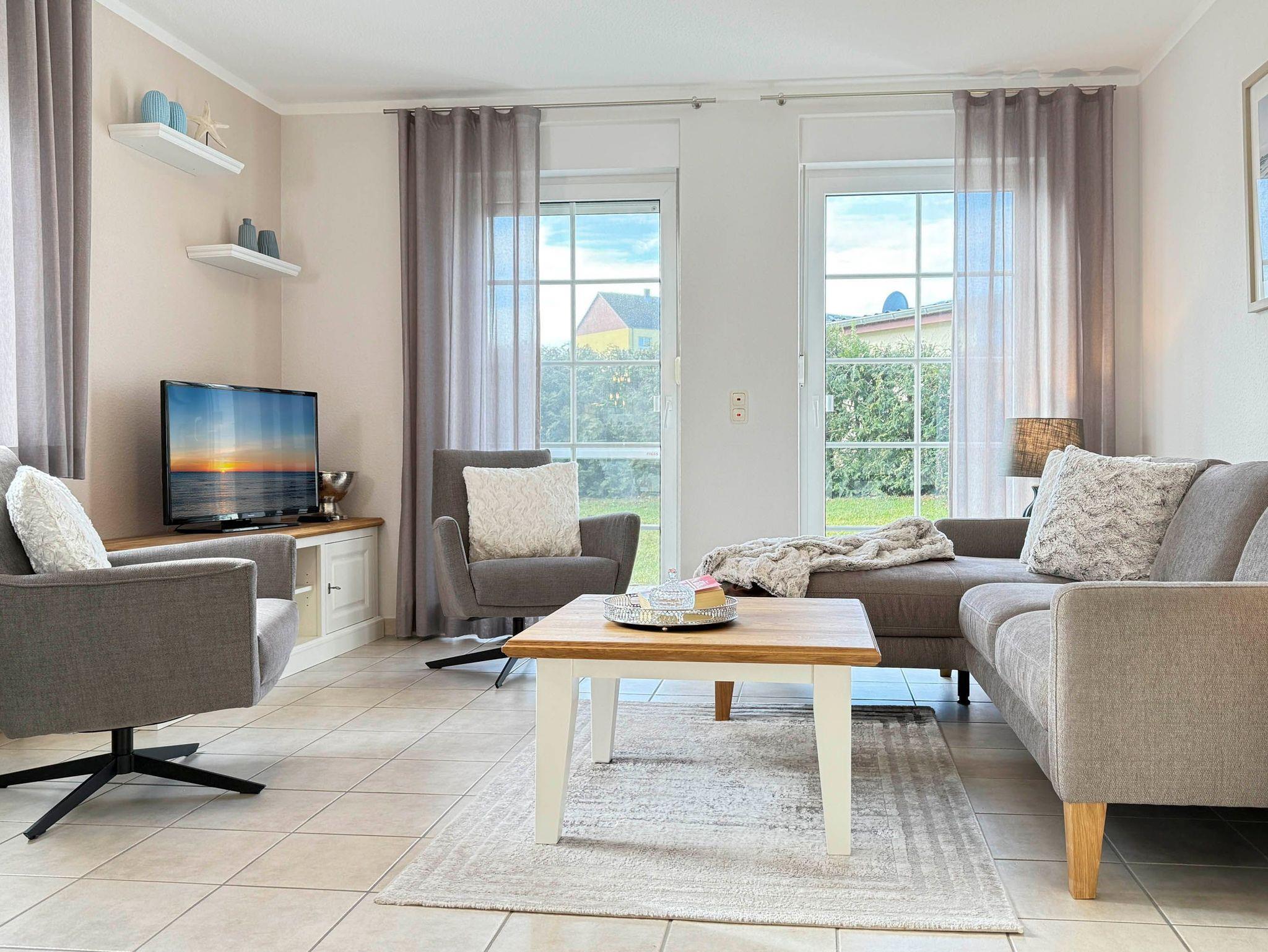• Gemütlicher Wohnbereich mit bequemer Sitzgruppe und Flachbild-TV