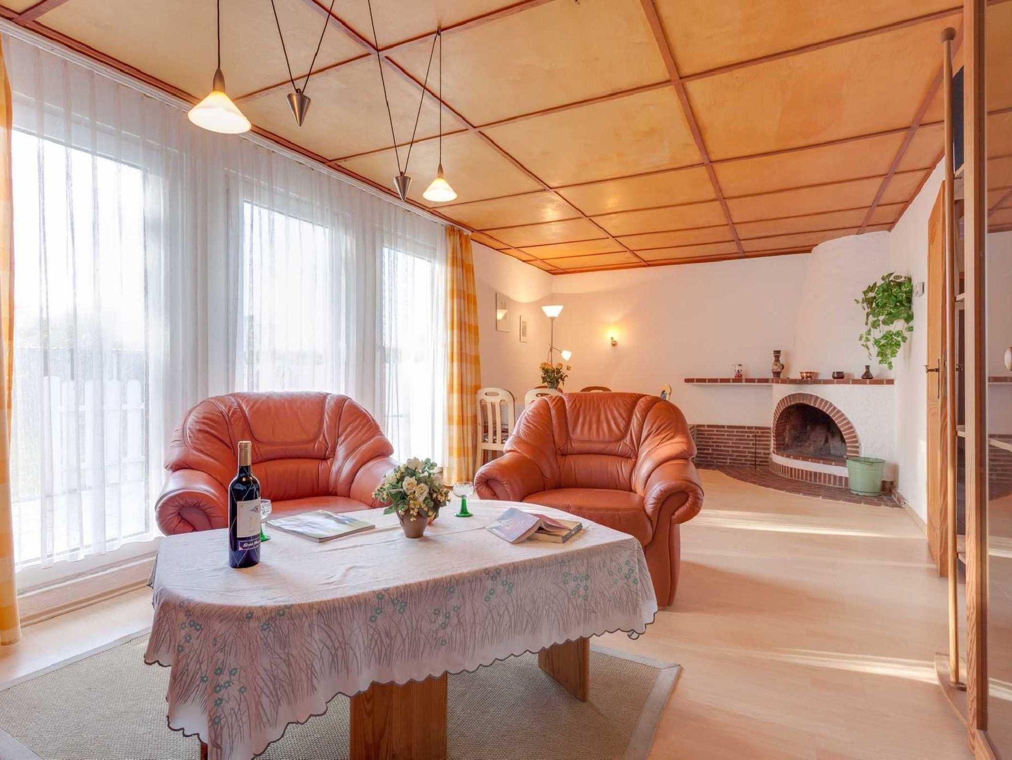 Das Haus verfügt über Wohnraum mit Kamin & Sitzecke sowie Eßecke, 2 Schlafräume (Doppelbett bzw. 3 Einzelbetten ), Küche (E-Herd, Backofen),