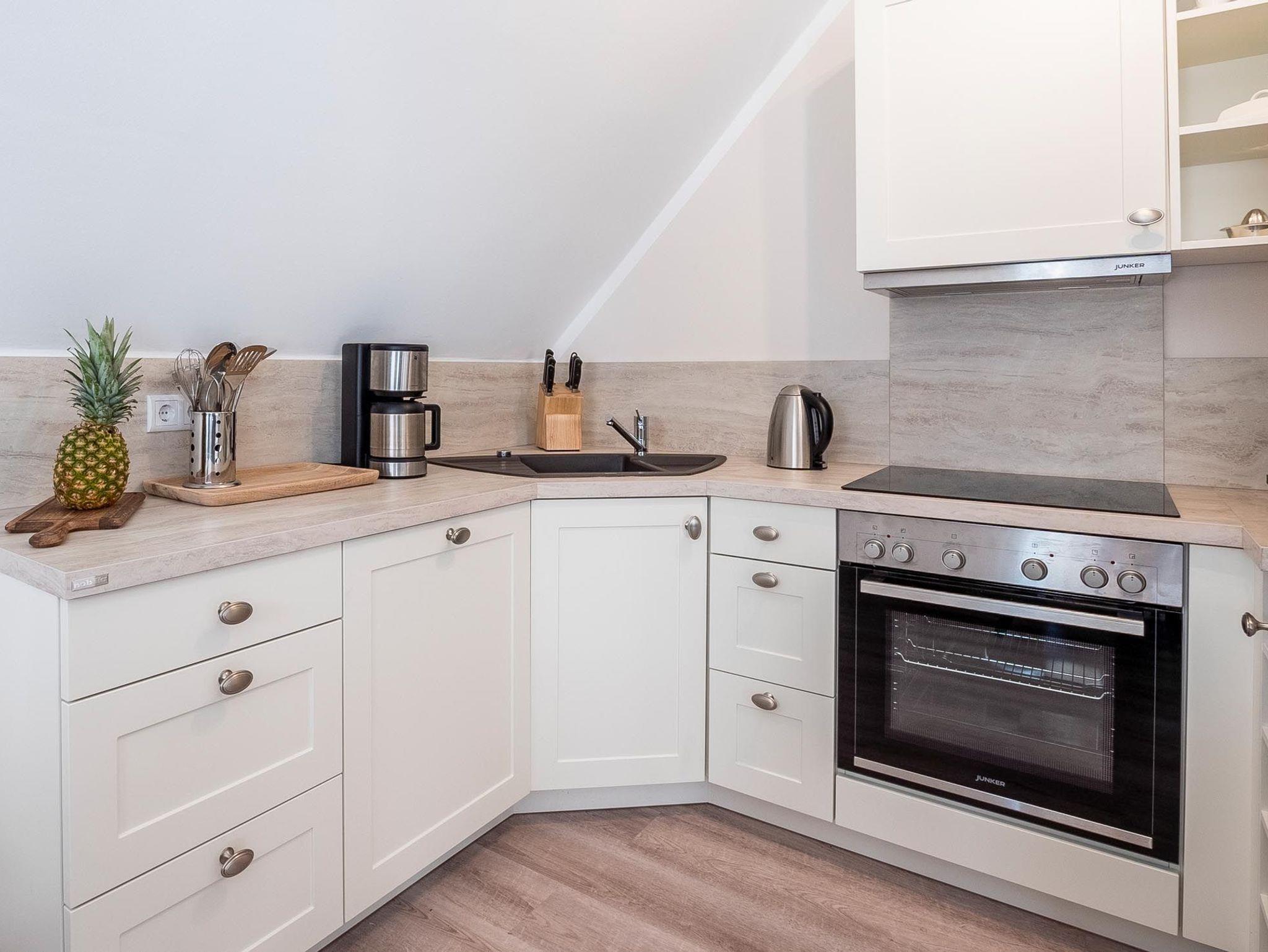Diese hochwertig und modern eingerichtete Maisonettewohnung befindet sich im 1. und 2. Obergeschoss eines 2-Parteien-Hauses unweit vom Zingster Ortskern.