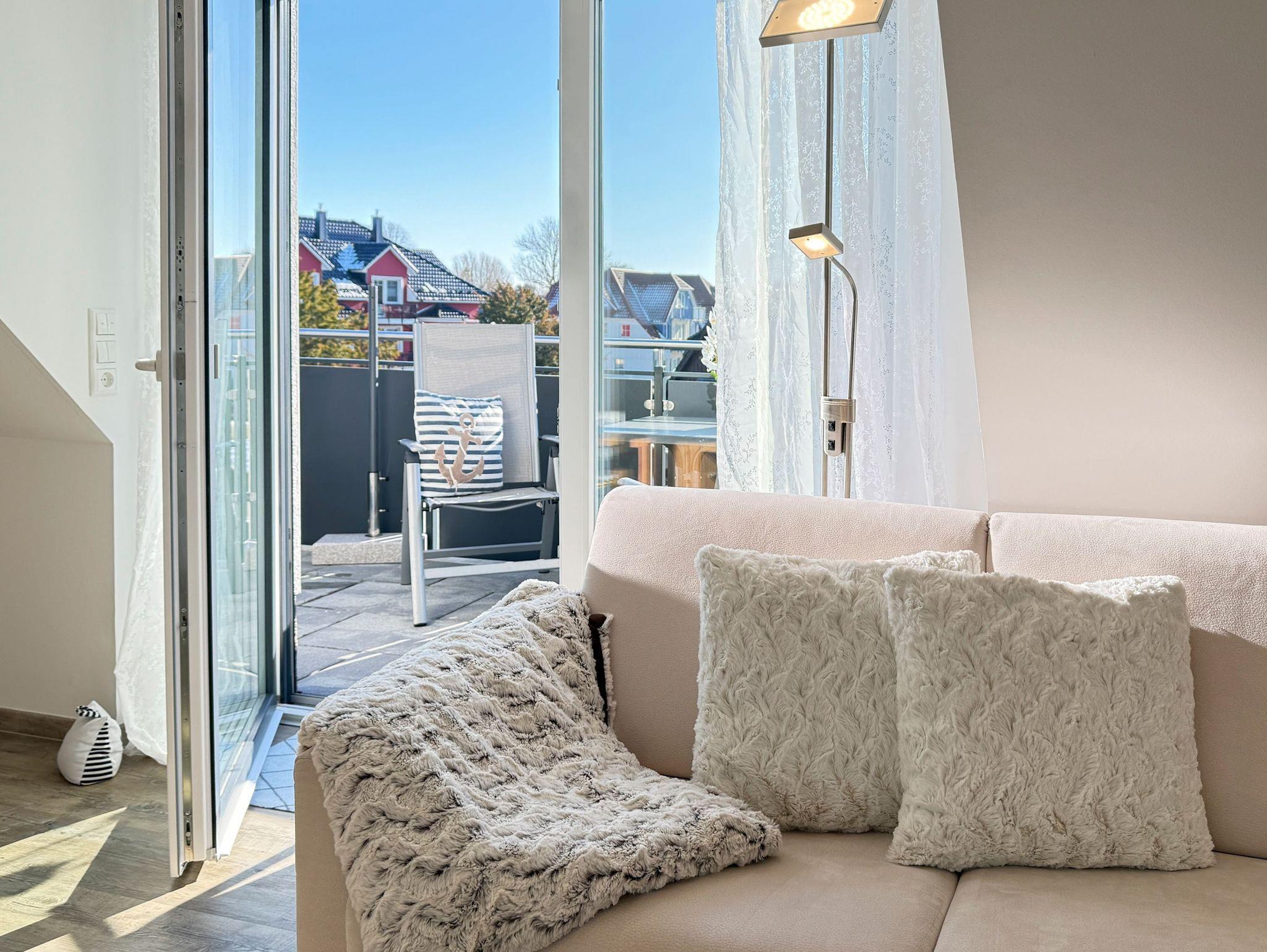 • Privater Balkon: Möbliert mit Gartenmöbeln und Sonnenschirm ideal für entspannte Stunden an der frischen Ostseeluft.