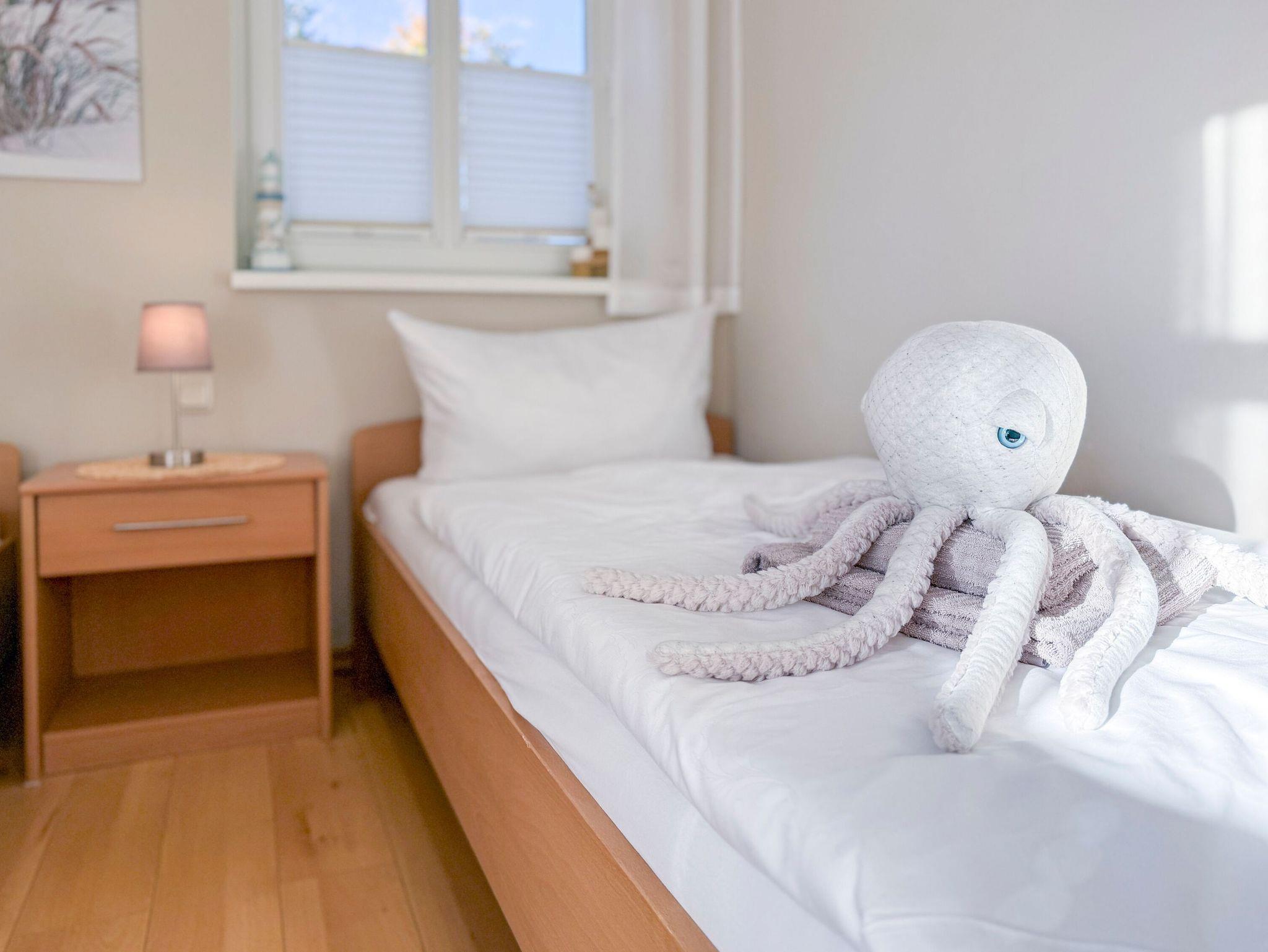 Für erholsame Nächte sorgen hochwertige Matratzen, Verdunkelungsmöglichkeiten und Insektenschutz für Ruhe und erholsamen Schlaf nach einem Tag am Meer.