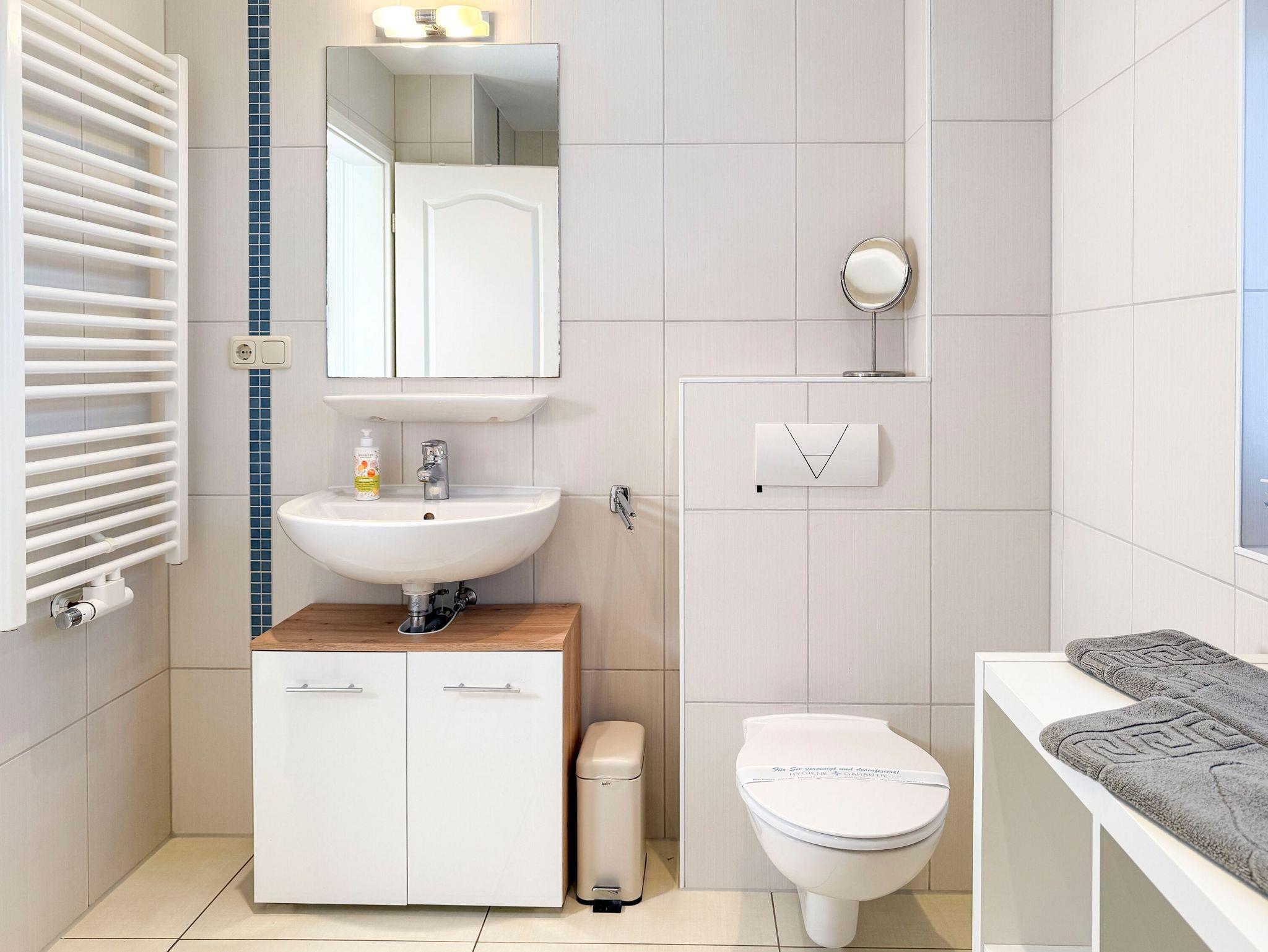 • Zwei moderne Badezimmer mit Dusche, Fußbodenheizung und Haartrockner