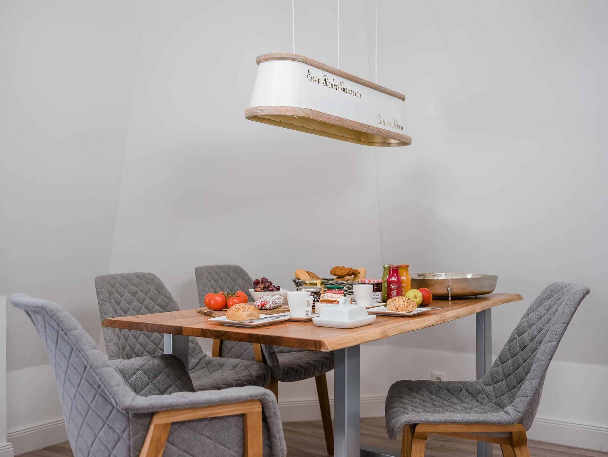 Zum Penthouse gehört ein Tiefgaragen-Stellplatz (Einfahrtshöhe 1,95m) sowie ein Aufzug welcher Sie direkt zur Wohnung führt. Kostenfreies W-LAN sowie ein abschließbarer Fahrradraum steht den Gästen ebenfalls zur Verfügung.