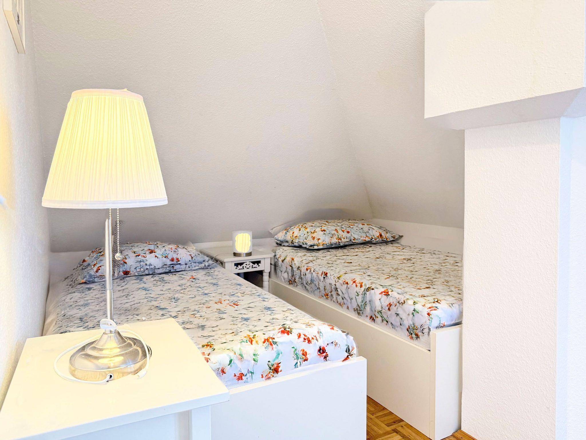 • Drei Schlafzimmer: Hauptschlafzimmer mit Doppelbett, Kinderzimmer mit Einzelbetten