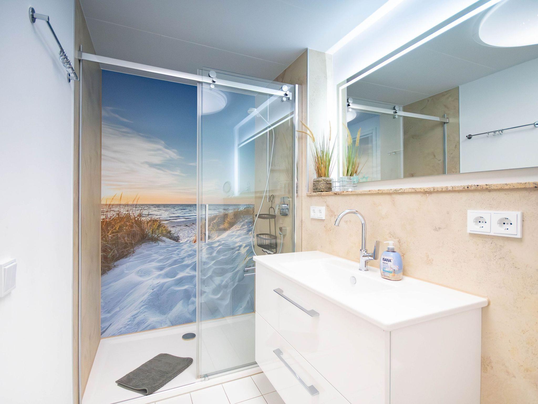 • Badezimmer: Ein modernes Duschbad plus separates Gäste-WC