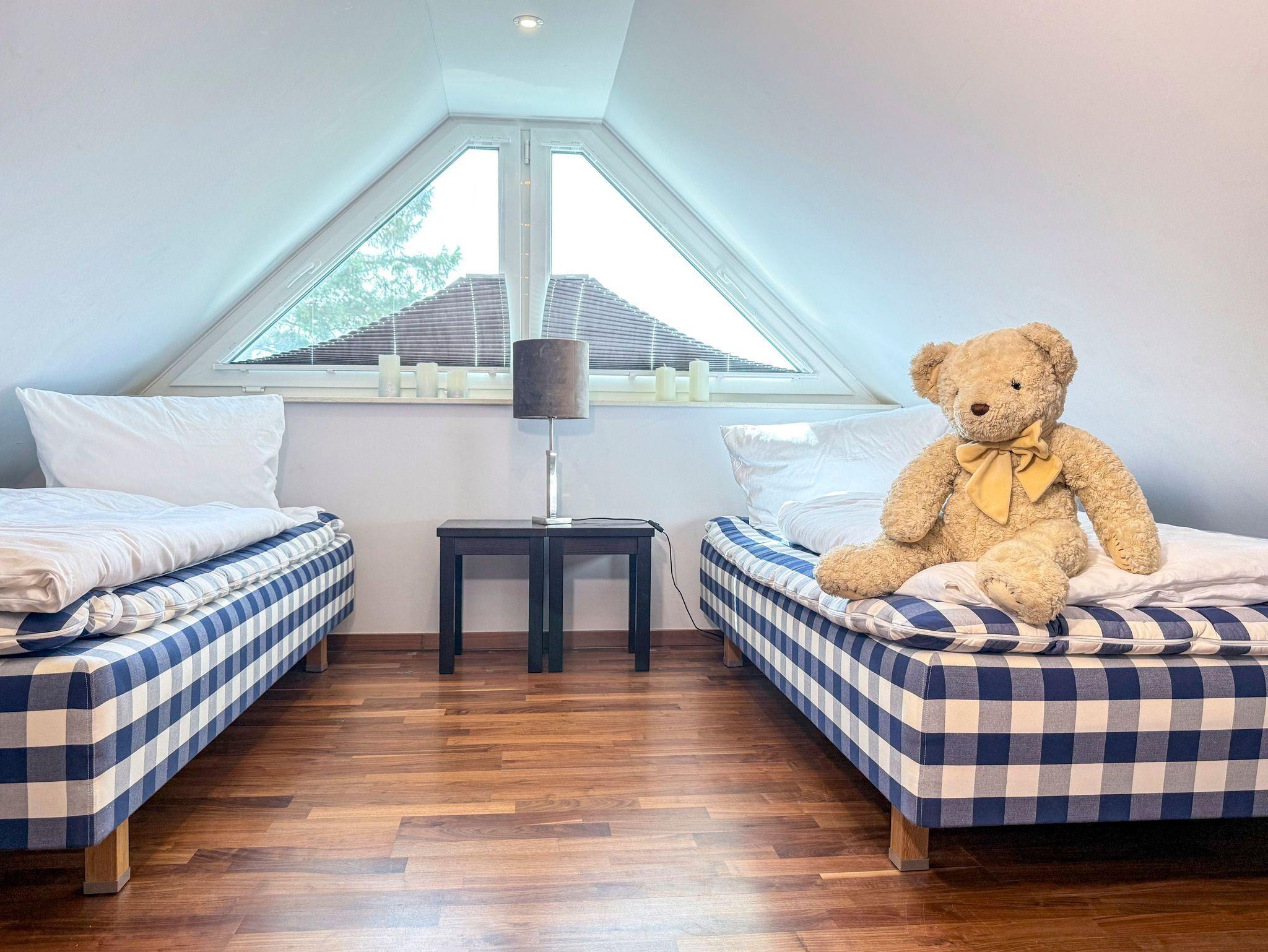 • 1 Schlafzimmer im offener, ausgebauter Dachboden mit 2 Einzelbetten
