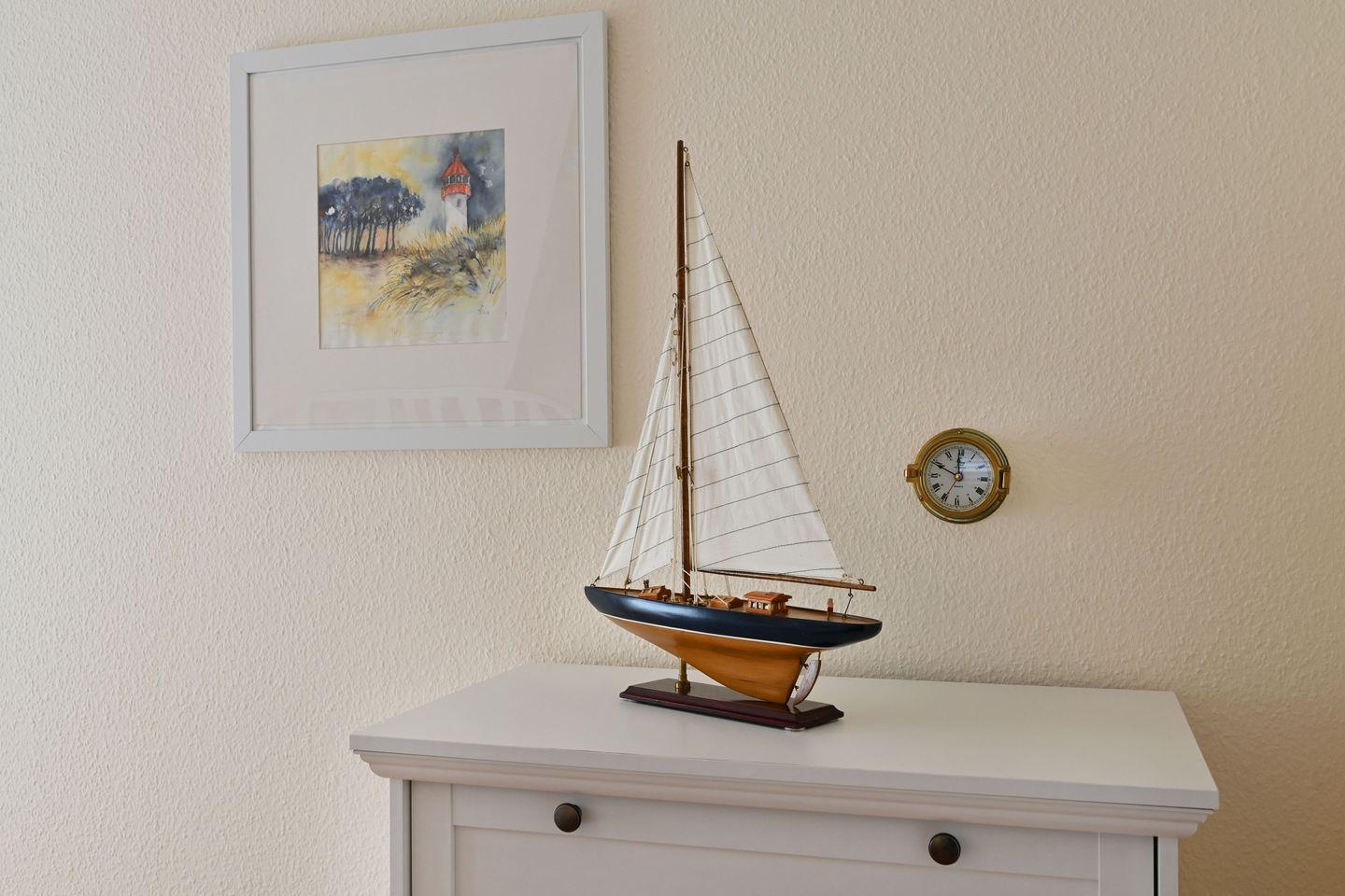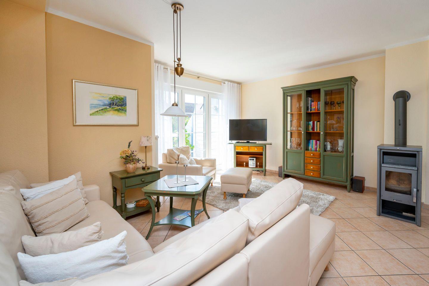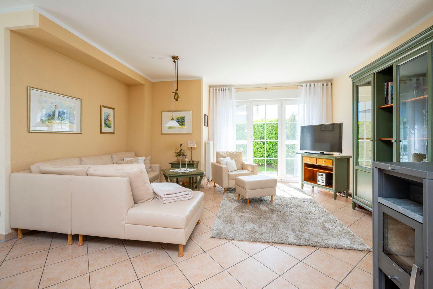 Dieses Ferienhaus in Zingst ist eine moderne Doppelhaushälfte mit rund 84?m² Wohnfläche auf drei Etagen. Im Erdgeschoss befindet sich ein heller Wohnbereich mit Kaminofen, eine komfortable Essecke sowie eine vollständig ausgestattete Küchenzeile. Eine Waschmaschine und ein Gäste-WC ergänzen diesen Bereich.