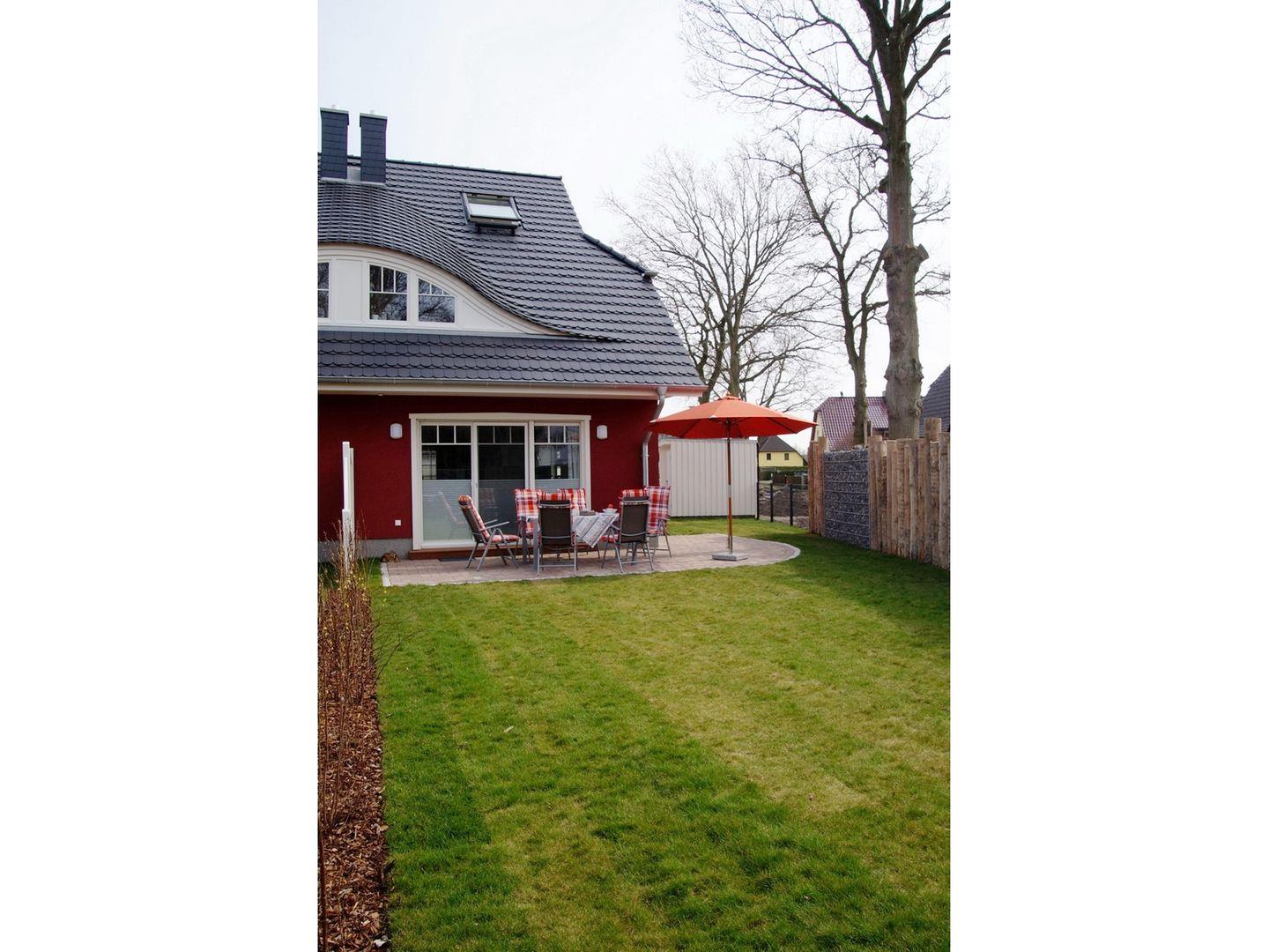 Ein separater Schuppen mit 2 kostenlosen Fahrrädern, ein Bollerwagen sowie eine Terrasengarnitur befindet sich im Garten.