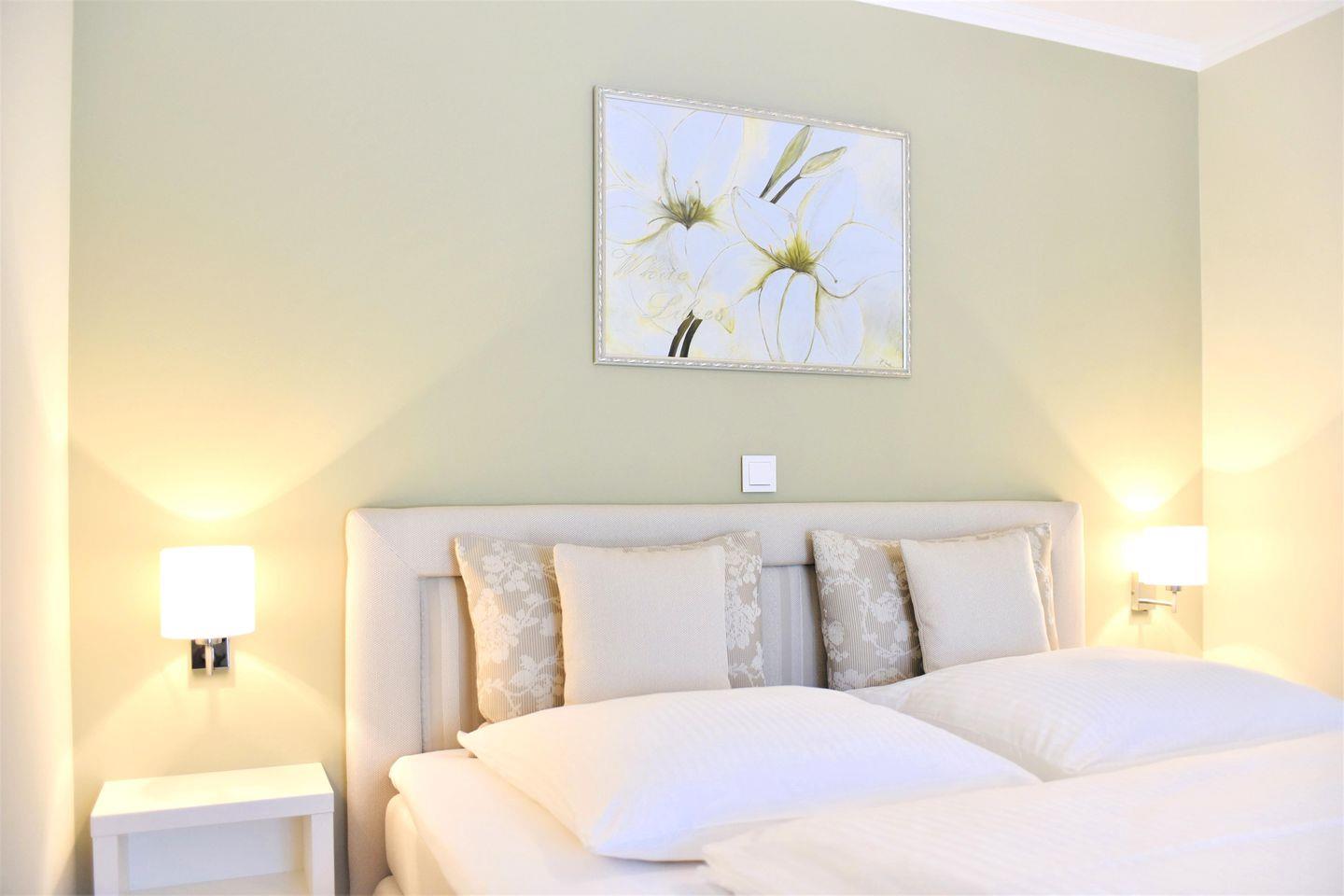 Es verfügt über digitale Flachbild TV‘s im Wohn- und Schlafbereich, über bodentiefe Fenster, einen luxuriösen Boxsprinbett im SZ und einer Schlafcouch im WZ, einer vollausgestatteten