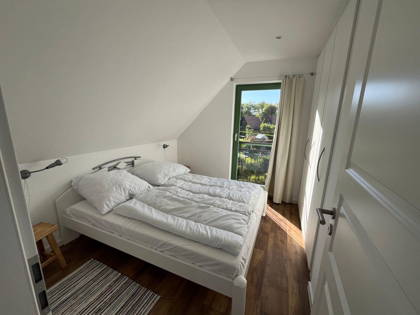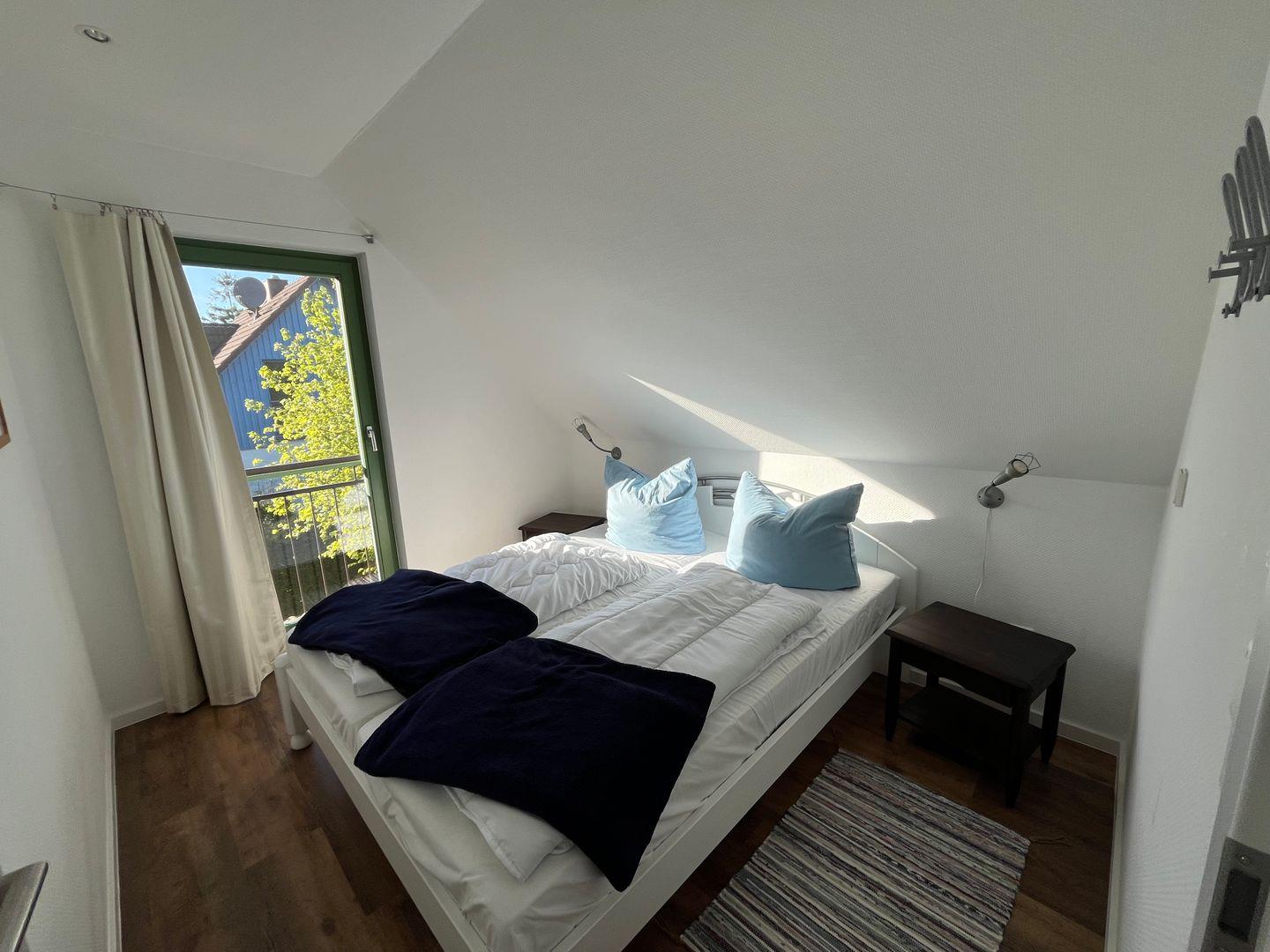 In der oberen Etage befinden sich weiterhin ein Bad mit Dusche, WC und Waschmaschine, zwei Schlafzimmer mit Doppelbetten sowie ein großes (Spiel-) Zimmer mit einem Einzelbett und Schlafsofa.