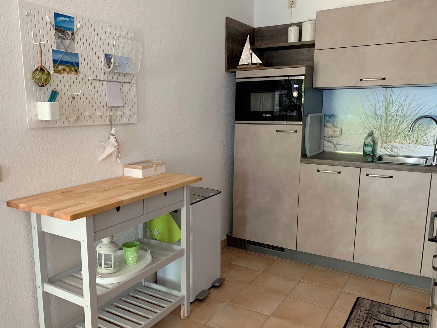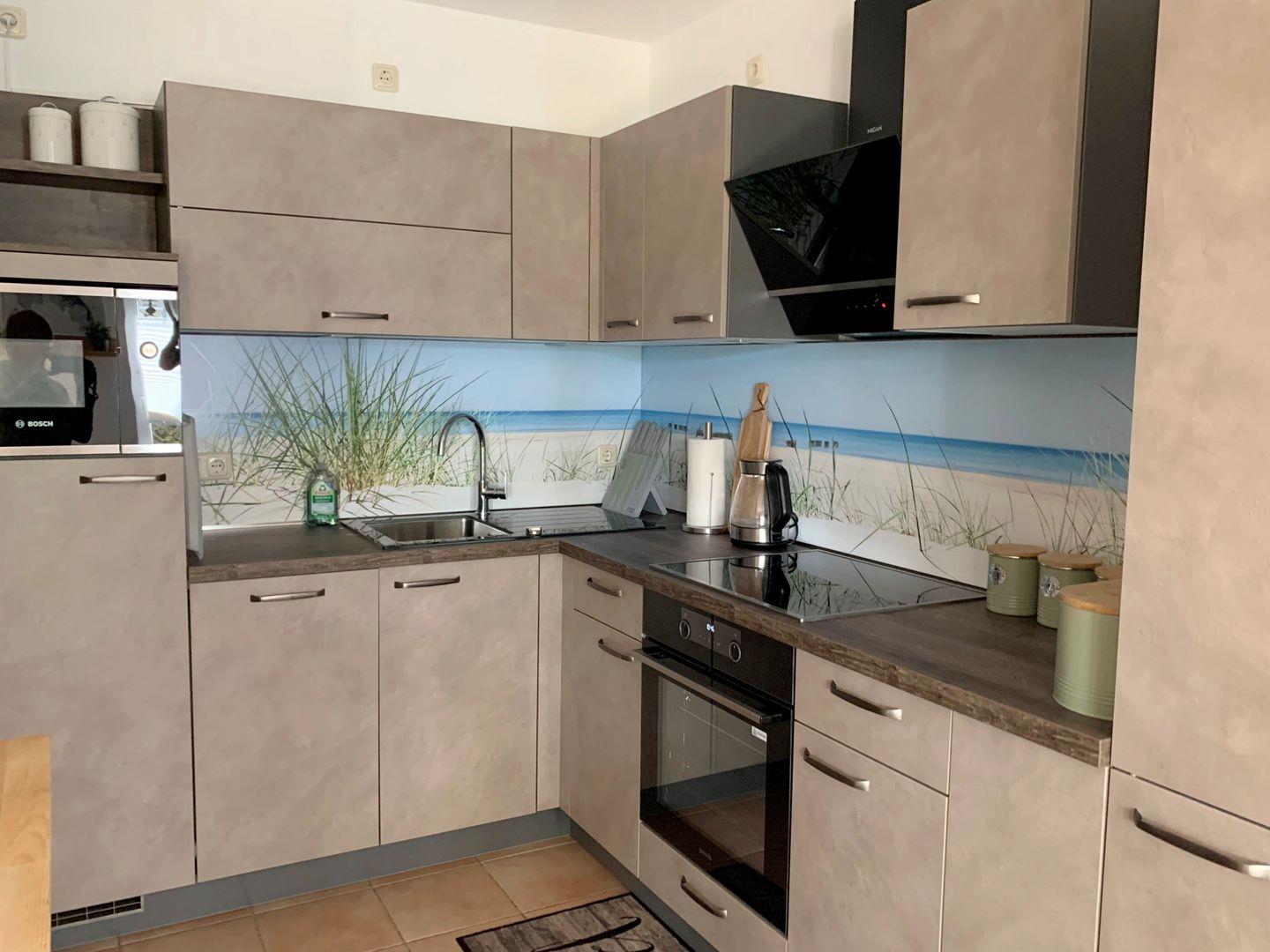 Die Küche ist komplett und mit modernen Geräten ausgestattet.