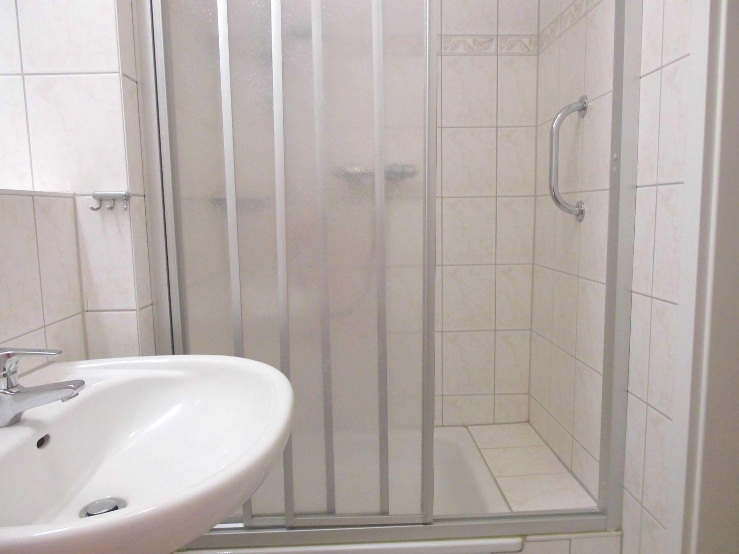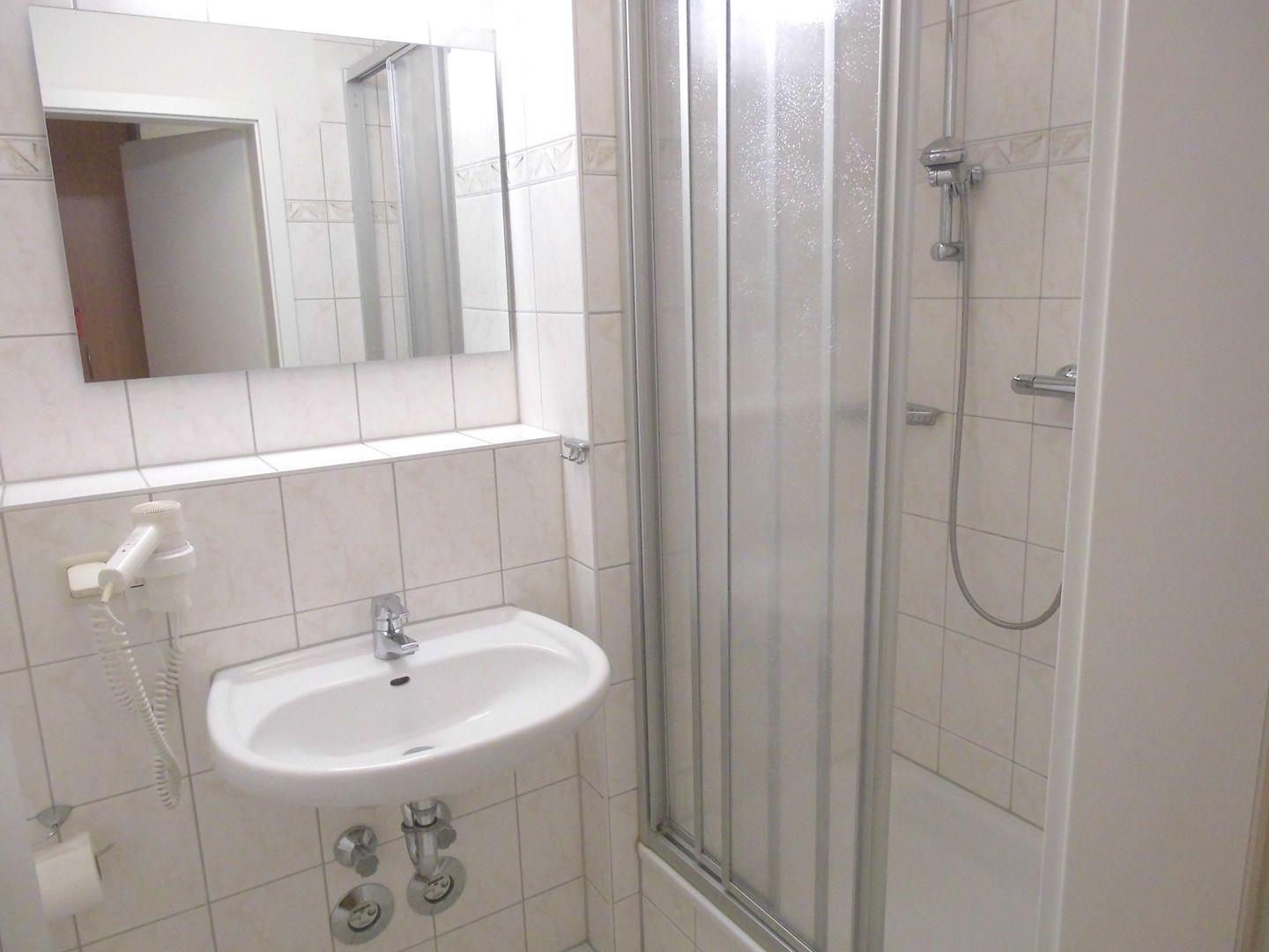 Das Badezimmer mit Dusche ist separat gelegen.