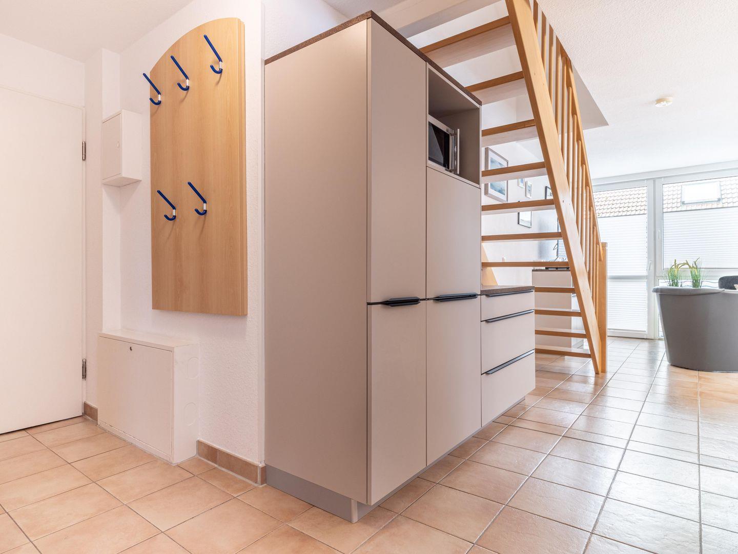Die Ferienwohnung ist 63 m² groß, für bis zu 6 Personen geeignet und erstreckt sich auf 2 Etagen.