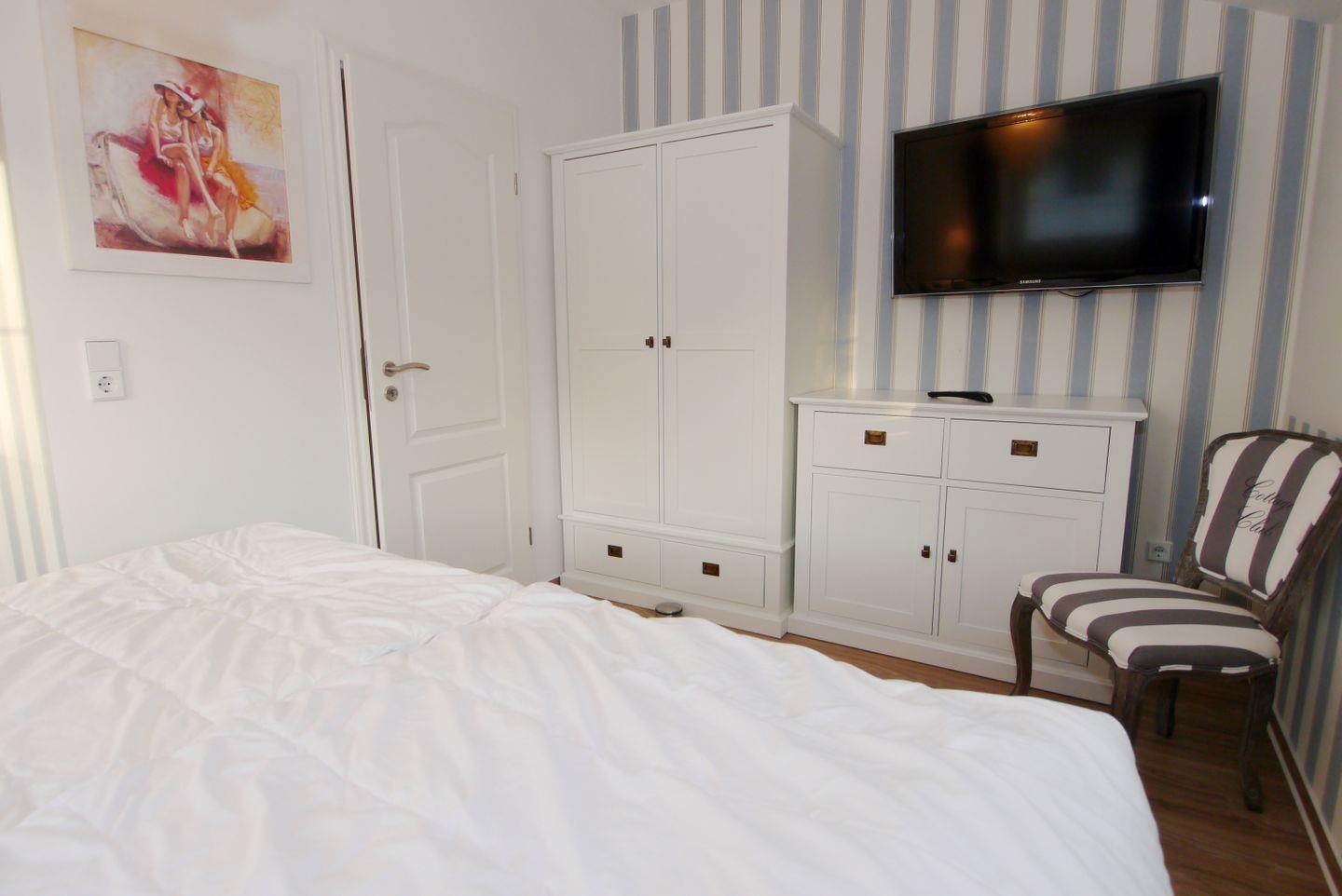Zwei Schlafzimmer sind mit einem Doppelbett ausgestattet, eines verfügt über einen zusätzlichen Flachbildfernseher.