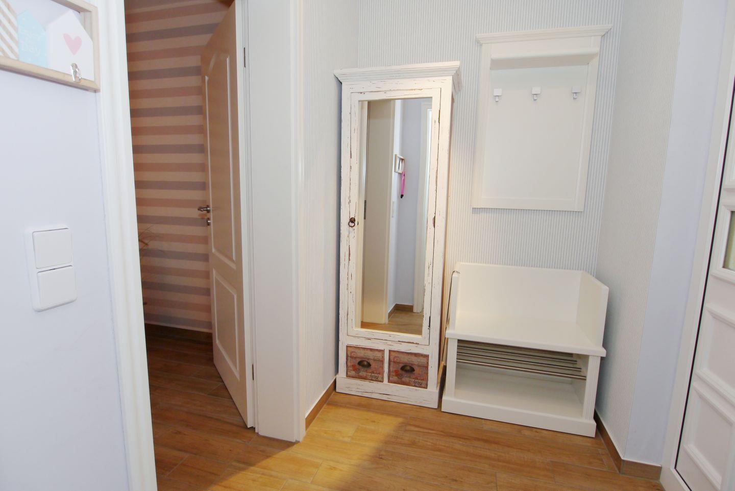 Über eine Treppe im Wohnbereich gelangt man ins Obergeschoss mit den Schlafzimmern und dem großen Badezimmer mit Badewanne.