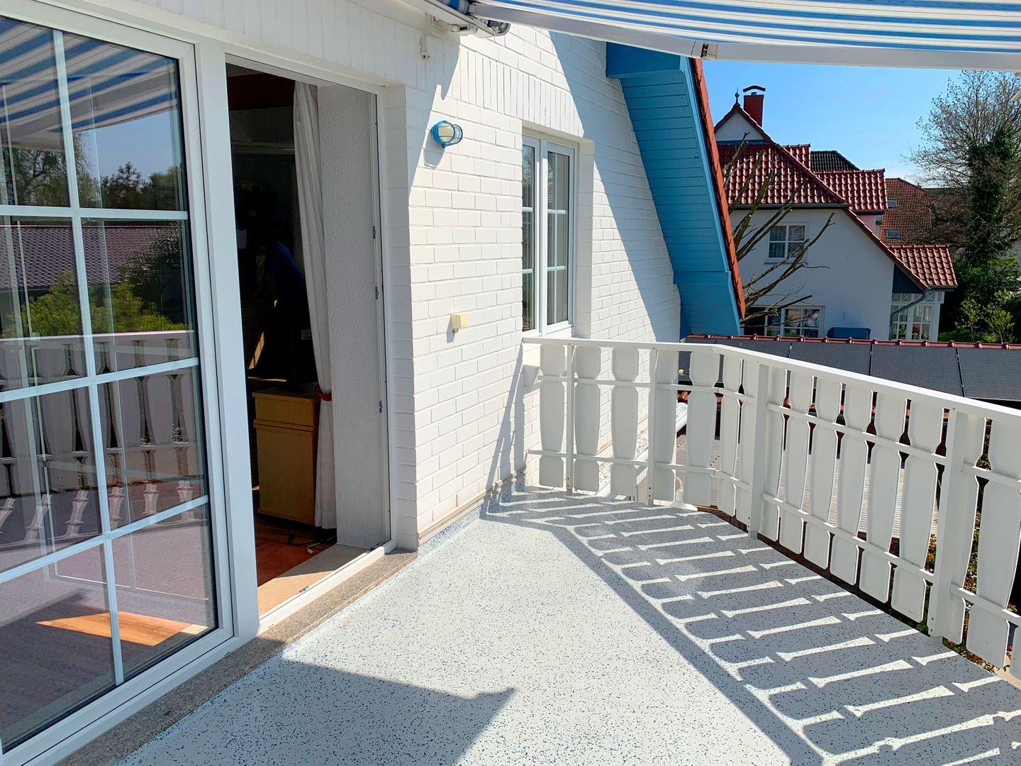 Diese 75 m² große Komfort-Ferienwohnung liegt sehr ruhig in einer kleinen Nebenstraße und nur 350 m vom Strand entfernt.