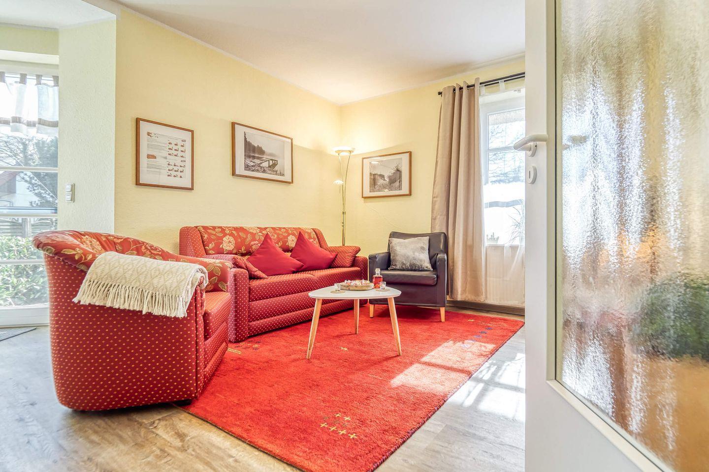 Die Wohnung im Parterre erstreckt sich über 57 m² und bietet ausreichend Platz für bis zu drei Personen. Sie verfügt über ein helles Schlafzimmer, ein gemütliches Wohnzimmer und ein modernes Bad. Im Wohnzimmer lädt ein komfortables Sofa zum Entspannen ein, während der integrierte Essbereich zu gemeinsamen Mahlzeiten einlädt. Für Unterhaltung ist ebenfalls gesorgt: Ein digitaler TV-Anschluss sowie ein Radio stehen zur Verfügung, sodass Sie sich auch in Ihrer Freizeit bestens unterhalten fühlen.