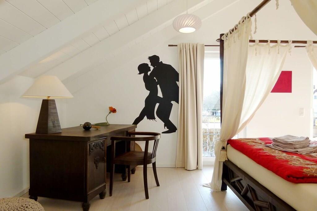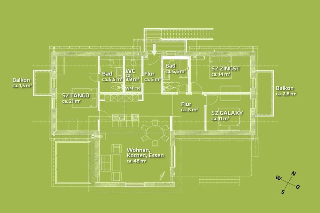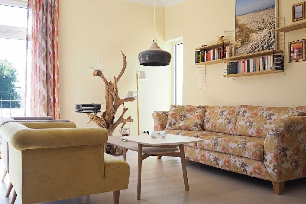 Designorientierte Luxus-Ferienwohnung im Obergeschoss des Ferienhauses WiesenART mit viel Platz auf über 140 m² Wohnfläche für max. 6 Personen. Großer Wohn-Essbereich mit Luxusküche, Kaminofen, 3 individuellen Schlafzimmern, 2 Bädern, 1 Gästebad, Balkone an den Schlafzimmern, 3 Parkplätzen, eigene überdachte Terrasse im liebevoll angelegten Garten sowie zusätzlich ein Grillplatz und Außensauna zur Mitbenutzung. Der separate Eingang der Wohnung ist über eine großzügige Außentreppe zu erreichen.