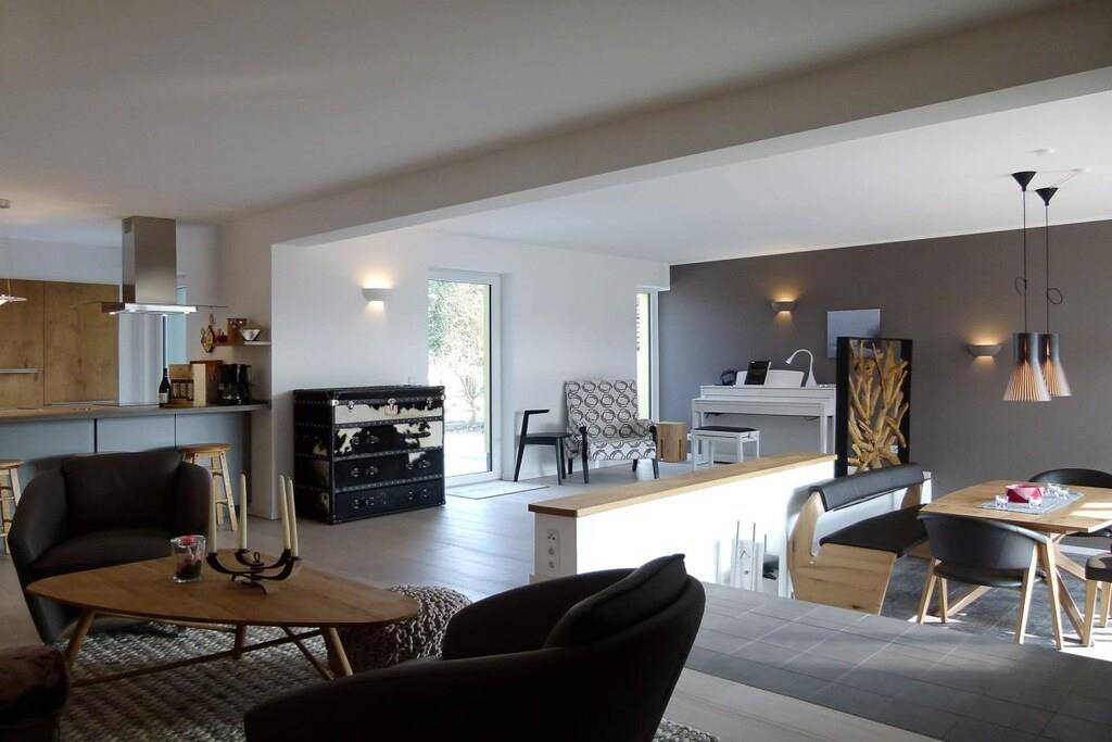 6 Schlafzimmer, 4 Bäder, 2 Gästebäder, 2 Kamine, Sauna, 2 Luxusküchen, 2 große Wohnzimmer, Grillpatz, überdachte Außenterassen, großer Garten. Die individuelle Einrichtung ist hochwertig und designorientiert. Das gesamte Haus besteht aus 2 Wohneinheiten. 6 Parkplätze stehen zur Verfügung.