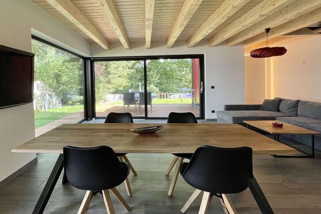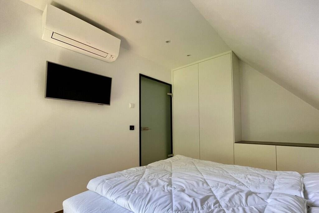 Stueetage: (entre(, varme), stue / spisestue(, , , , , tekøkken, Fjernsyn, spisebord, kakkelovn, kogeplade, komfur, kaffemaskine, ovn, grill, opvaskemaskine , køleskab, fryser, varme, klimaanlæg, barnestol, føntørrer, insektnet), guest toilet(, toilet, håndvask, varme)) Loft: (entre(varme, insektnet), soveværelse(, , dobbeltseng, Fjernsyn, varme, klimaanlæg, insektnet), soveværelse(, , dobbeltseng, Fjernsyn, varme, klimaanlæg, insektnet), badeværelse(, toilet, bruser, håndvask, varme)) , varme, terrasse(havemøbler), parkering