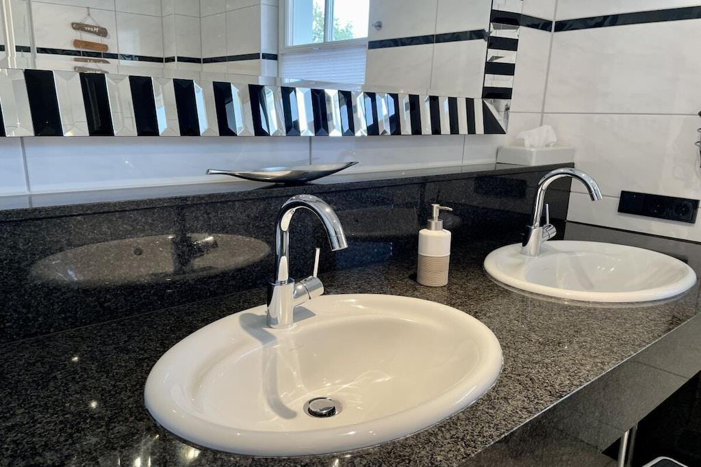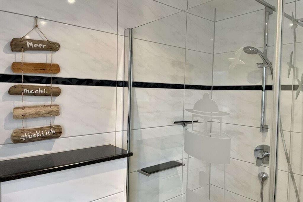 Lyse værelser og eksklusive, børnevenlige faciliteter venter dig: lyse granitgulve, et køkken af høj kvalitet, et dobbelt håndvaskebord i natursten, bruseniche i glas og gulvvarme. Vi tilbyder en rummelig entré, et bryggers med vaskemaskine og tørretumbler (gratis), to brusebadeværelser, tre soveværelser med tv, en stor opholdsstue med pejs til hyggelige aftener, Wi-Fi og et veludstyret køkken. Udenfor inviterer en overdækket, sydvestvendt terrasse dig til at slappe af. Dobbelt babyudstyr (barneseng, højstol osv.) Tilbring afslappende dage i et næsten nyt, kærligt møbleret feriehus med luksuriøse faciliteter. Vi glæder os til at byde dig velkommen!