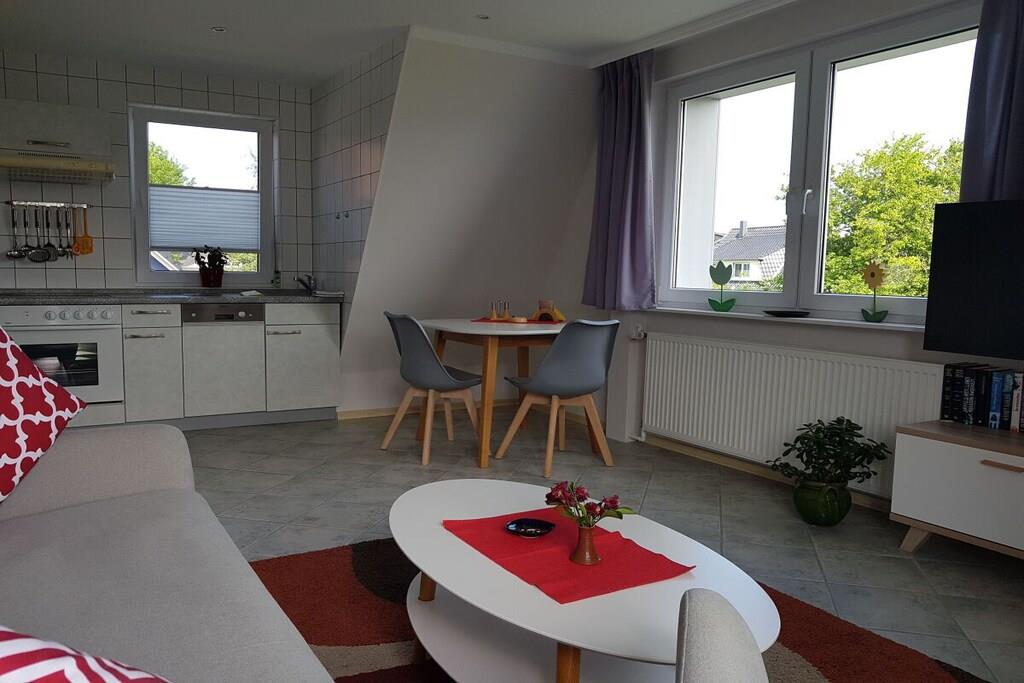 Vi har kærligt indrettet ferielejligheden. Den har et soveværelse, et badeværelse med bruser, en stue med tekøkken og en stor sydvendt balkon, der er tilgængelig fra både stuen og soveværelset. Sengelinned, håndklæder og køkkenrulle er inkluderet. Du bor centralt, men roligt med masser af indkøbsmuligheder i nærheden. Østersøstranden og Bodden-lagunen ligger kun 10 minutters gang væk. Der er parkering på ejendommen, og cykler kan opbevares der. Der er også en læhegn til dit strandbesøg.
