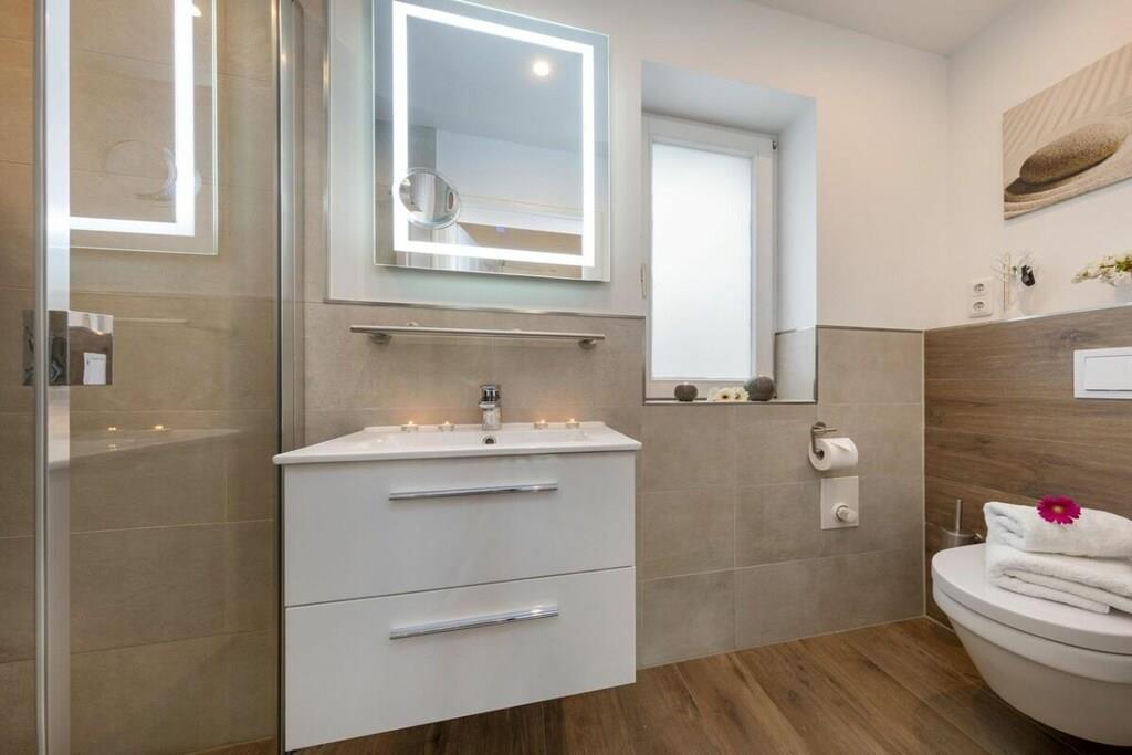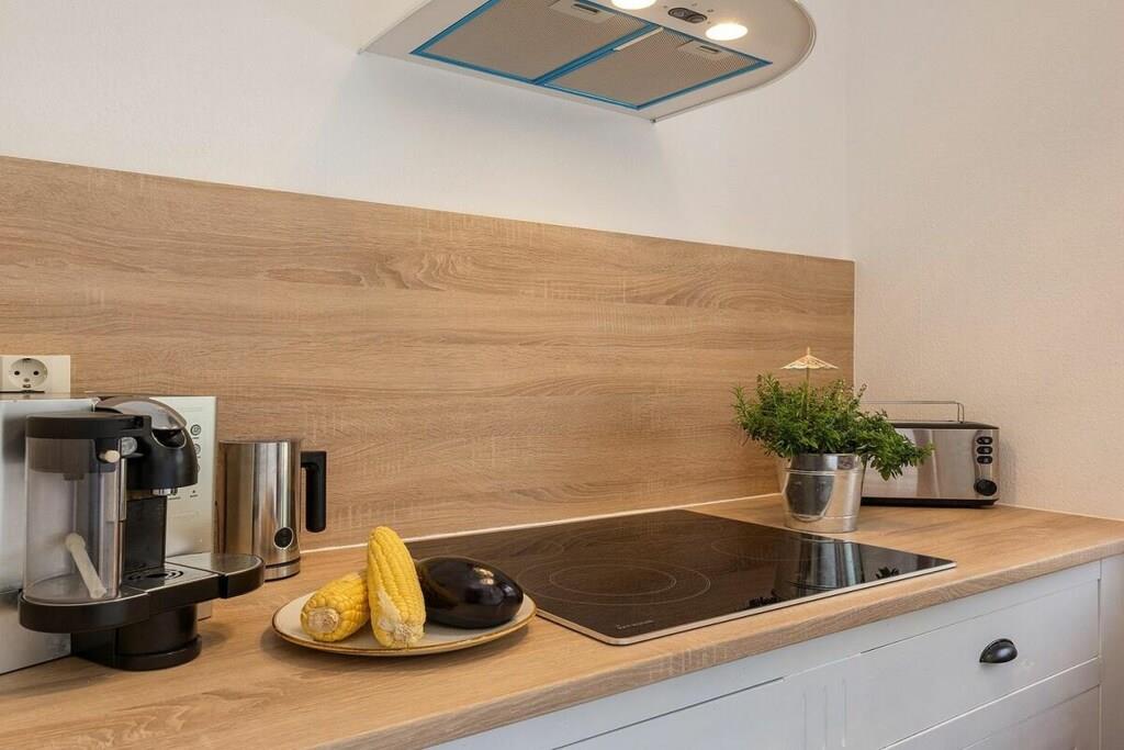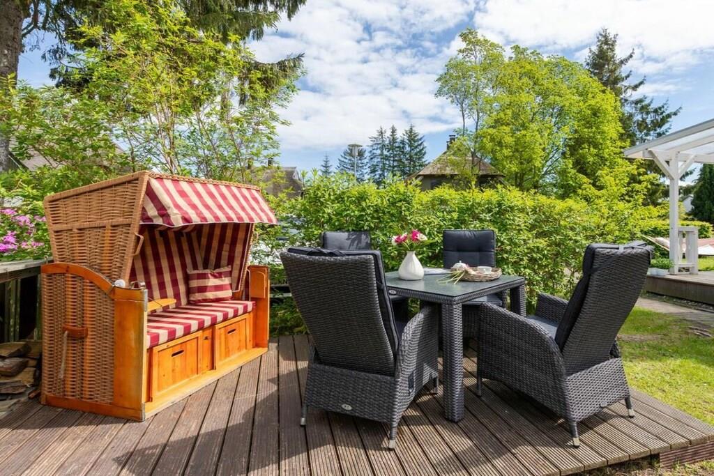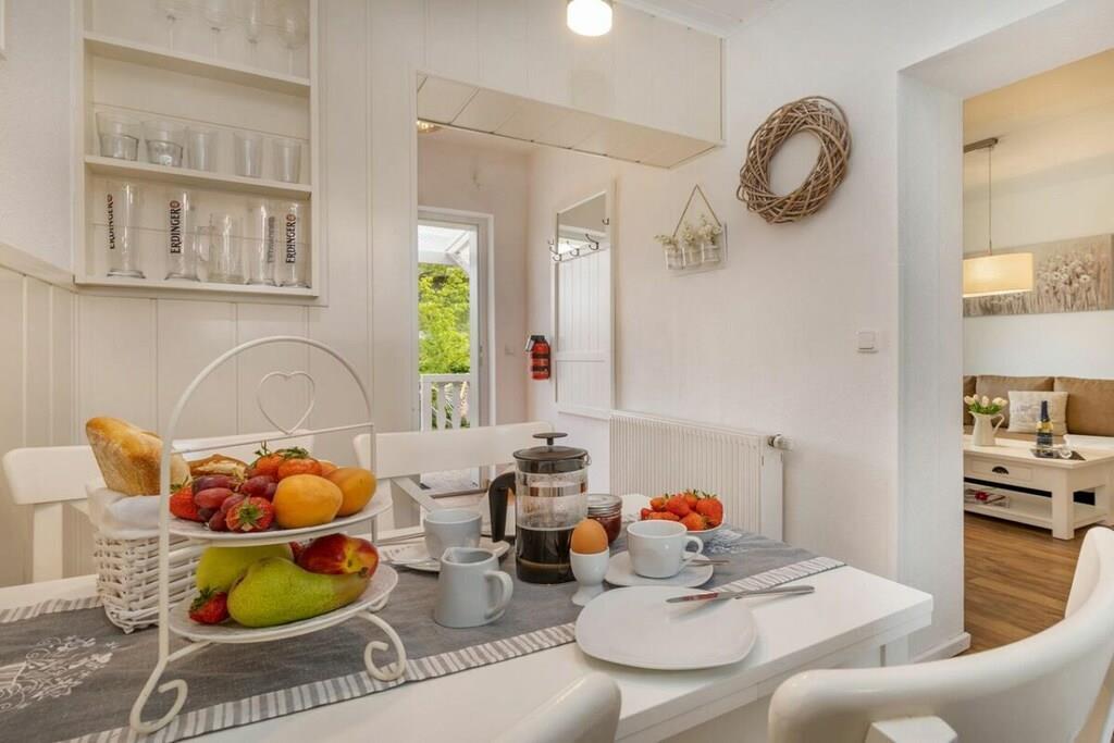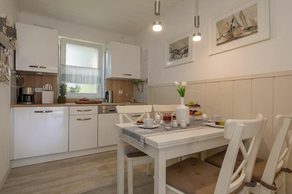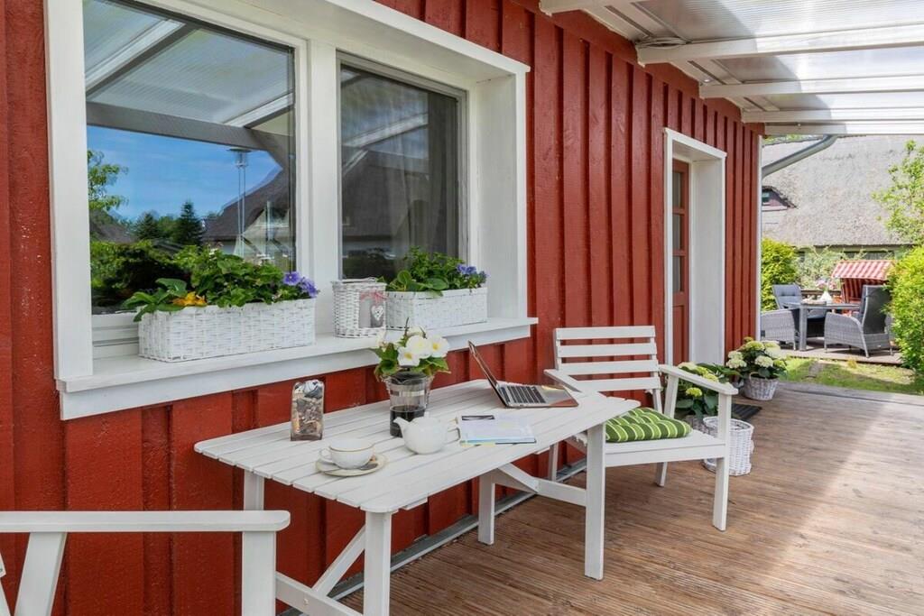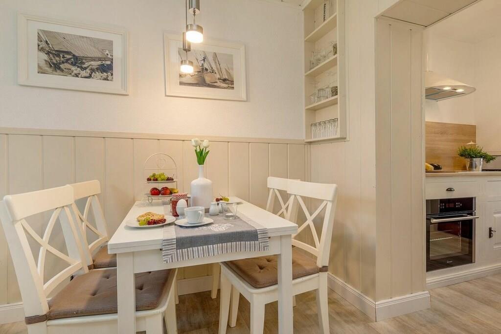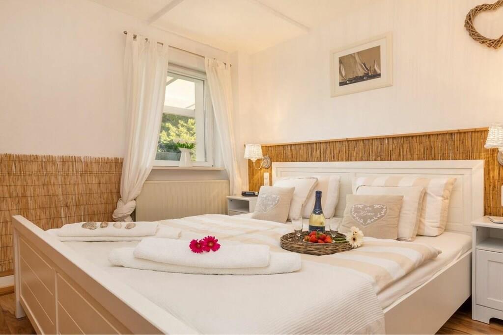 Vores 50 m² store ferielejlighed ligger i Zingst og har en smuk pejs, sauna og gulvvarme på badeværelset. Den ligger kun 10 minutter fra stranden og bymidten, men alligevel omgivet af natur. Den har en meget idyllisk beliggenhed lige i Zingst, tæt på stranden og bymidten. Meget sjælden at finde. Den ligger i stueetagen, omgivet af grønne områder, med to terrasser. En af dem er overdækket, så du altid kan sidde komfortabelt udenfor. Der er grill, havemøbler, sandkasse, have, stort tv, mikrobølgeovn, miniovn, køkken (med alt hvad du behøver), opvaskemaskine osv.