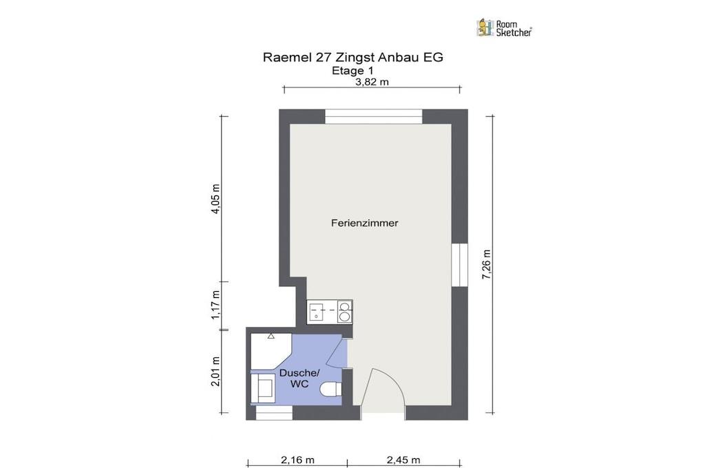 På 1. etage: (Stue/soveværelse(, , , , , , , , tekøkken, toilet, dobbeltseng, Fjernsyn, spisebord, radio, stereoanlæg, elkedel, brødrister, komfur, kaffemaskine, mikrobølgeovn, køleskab, fryser, bruser, håndvask, vaskemaskine, insektnet)) , , , Køkken, badeværelse(, toilet, bruser, håndvask, varme), Internetadgang, Førstehjælp, vaskemaskine, varme, have(sauna), parkering, strygebræt, strygejern