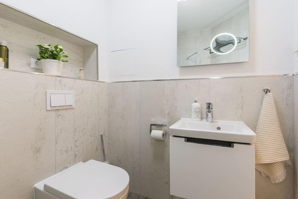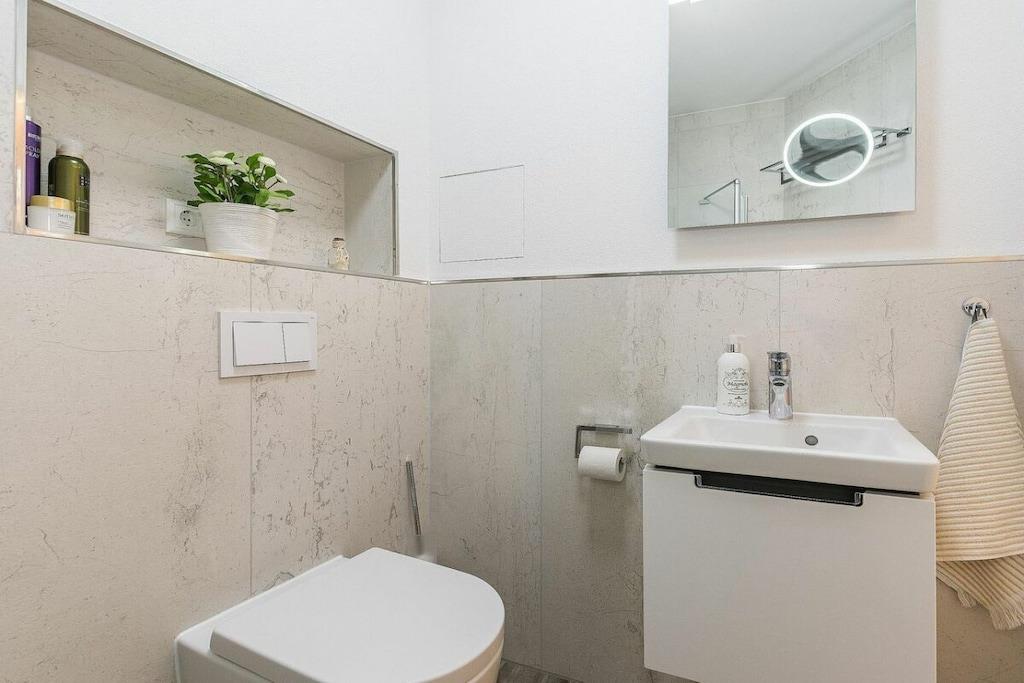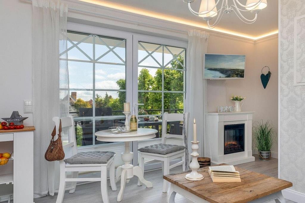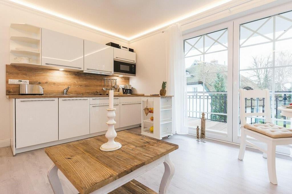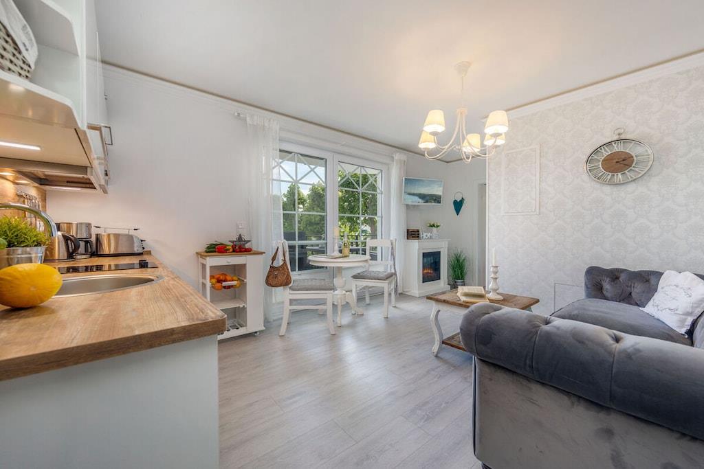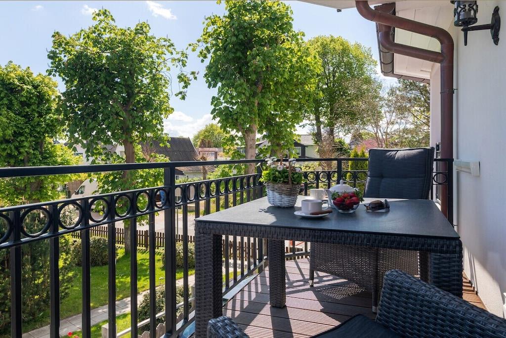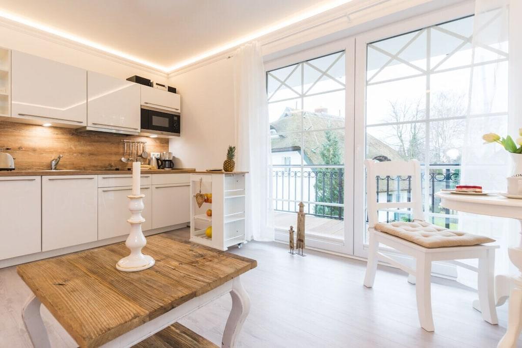 Denne ferielejlighed ligger i Zingst, lige ved stranden, med en stor sydvendt balkon møbleret med havemøbler til at nyde morgenmaden. Ferielejligheden Ostseetraum har en hyggelig stue, et separat soveværelse og et moderne badeværelse. Indirekte belysning i stuklisterne i opholdsstuen skaber en hyggelig atmosfære om aftenen. Gæster kan reservere wellness-området, der ligger på øverste etage, til adgang døgnet rundt. Særlige faciliteter ved denne komfortable ferielejlighed: - Wellness-område med adgang til sauna - Elektrisk pejs - Beliggenhed på første række på Zingst-stranden - Rigeligt naturligt lys - Møbler af høj kvalitet Alle områder af Villa Strandblick er tilgængelige for gæster med begrænset mobilitet. Uanset om du booker en ferielejlighed med havudsigt på øverste etage eller ønsker at bruge wellness-området, er alt let tilgængeligt med elevator. Om morgenen kan du slentre til stranden i din badekåbe og nyde en svømmetur ved solopgangen. Bagefter kan du hente friske rundstykker direkte fra den mobile bagerivogn, der er parkeret udenfor (kun sæsonbestemt). Ferielejligheden har et fuldt udstyret moderne køkken med opvaskemaskine, emhætte og alt andet, du kan ønske dig i køkkenet. Badeværelset har bruseniche med gulvvarme og spa-bruser. Vores familiedrevne virksomhed er kærligt indrettet i nautisk stil. Du kan forvente personlig opmærksomhed og støtte. Vi kan endda arrangere fritidsaktiviteter, koncerter, massage, kranobservationsture, sejlture og meget mere før din ankomst. Bymidten ligger kun en kort gåtur langs stranden. Parkering er tilgængelig på Postplatz 3, ved siden af vores kontor. Vi ser frem til at byde dig velkommen til Villa Strandblick og sikre, at du får en uforglemmelig ferie. Familien von Klitzing