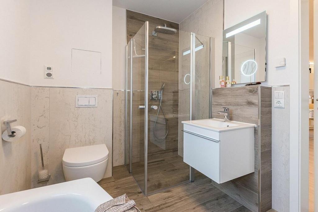 Lejligheden har et fuldt udstyret moderne køkken med opvaskemaskine, emhætte og komfur – alt hvad du kunne få brug for. Hvert soveværelse har et ekstra fladskærms-tv. Badeværelset har bruseniche med gulvvarme og spa-bruser. Nogle badeværelser har også badekar eller tv integreret i badeværelsesspejlet. Lejligheden har indirekte belysning i stuklisterne i hele opholdsstuen for at skabe en hyggelig atmosfære om aftenen.
