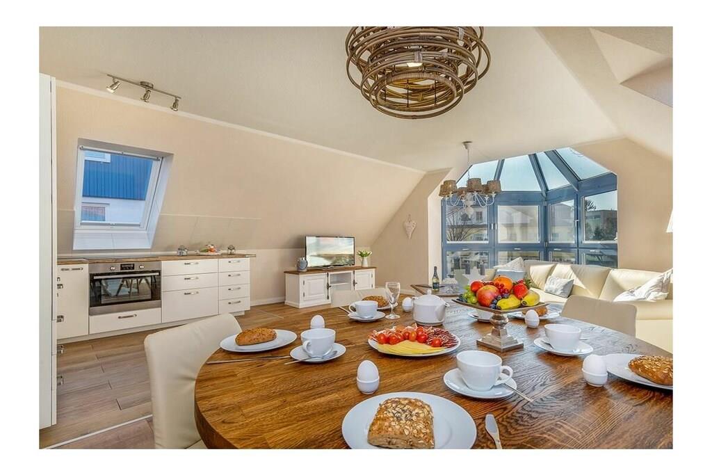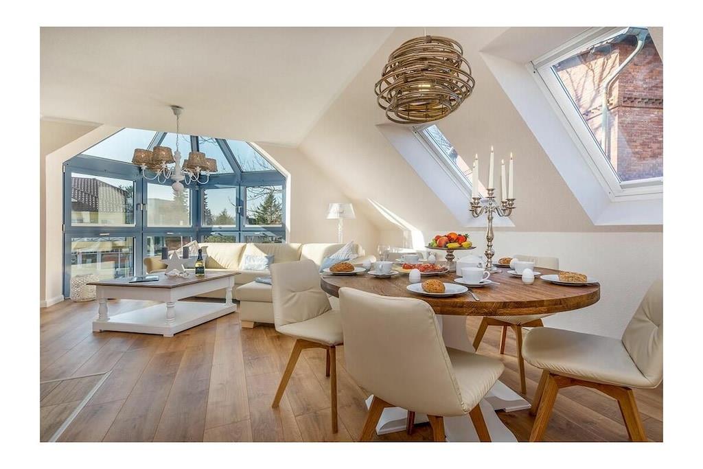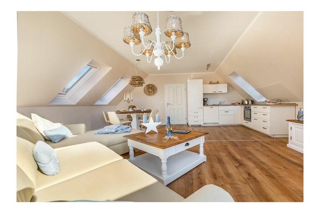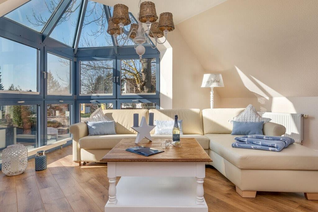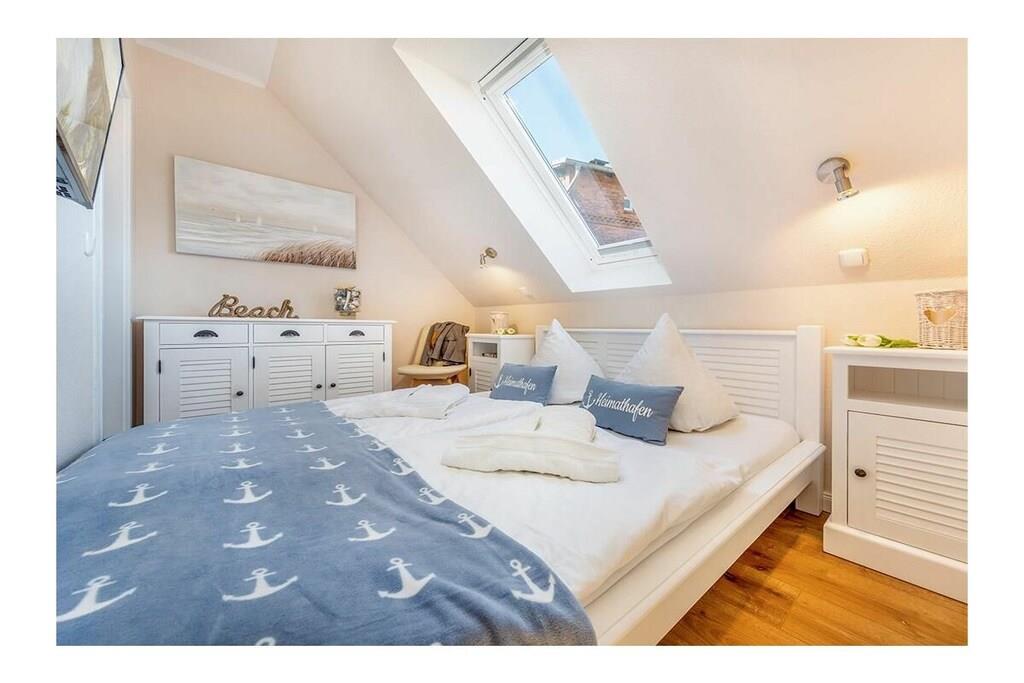 Denne smukke ferielejlighed er meget centralt beliggende med bageri, restauranter og stranden lige rundt om hjørnet. Den lyse, rummelige stue/spisestue har plads til op til 6 personer og har en privat sauna og en hyggelig elektrisk pejs med dejlig varme og plads. Seebrise-ferielejligheden har 2 soveværelser, hver med en dobbeltseng. I stuen kan sofaen endda laves om til en ekstra dobbeltseng på 160x200 cm. Hele indretningen er lys, indbydende og maritim. Soveværelse 2 har endnu et tv.