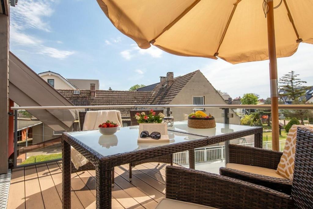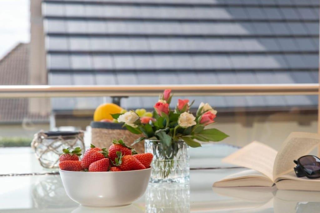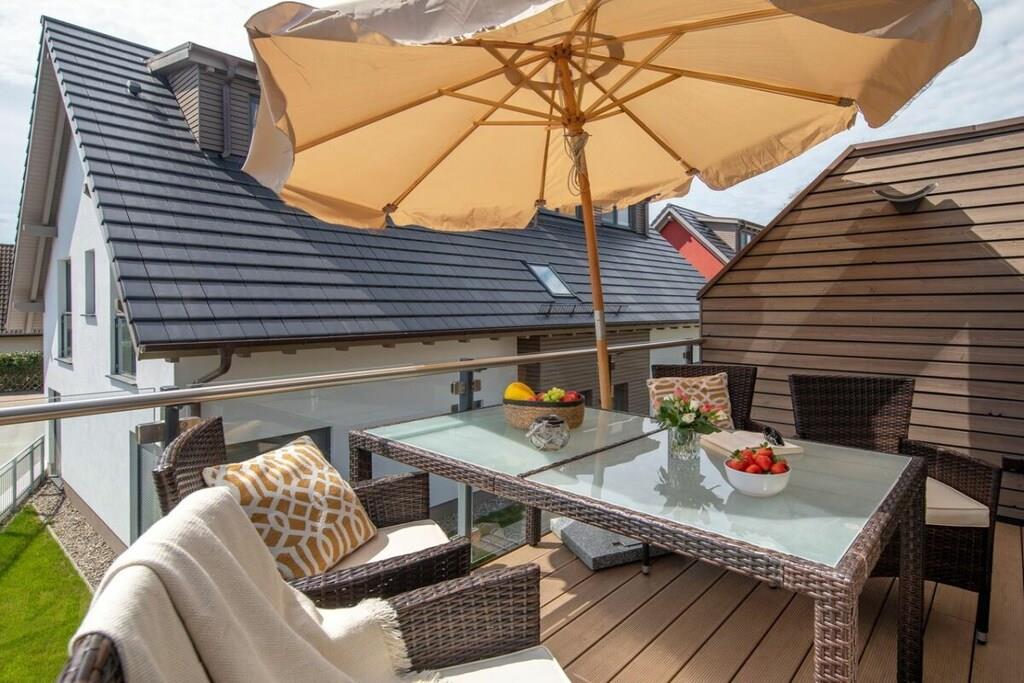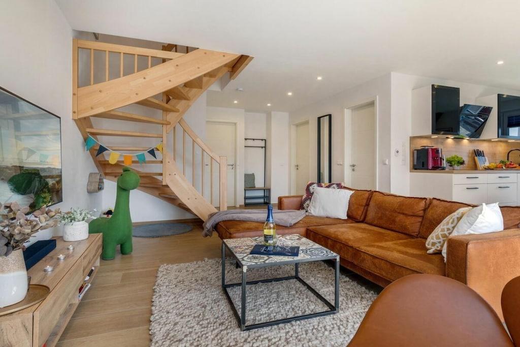 Ferielejligheden Windrose Suite er en del af det eksklusive feriekompleks Strandwiese. Lejlighedens arkitektur vil få dit hjerte til at slå hurtigere, da de gulv-til-loft-vinduer lukker masser af lys og vitalitet ind i din Windrose Suite. Suitens størrelse, cirka 83 m², er ideel til familier. På første sal finder du den rummelige, charmerende stue/spisestue med problemfri adgang til det veludstyrede køkken, inklusive induktionskomfur og fuldautomatisk kaffemaskine. Madlavning er en fornøjelse her. Badeværelset med dobbelt håndvask og bruseniche samt et soveværelse med en stor dobbeltseng (2,00 x 2,00 m) er også placeret på denne etage. På den store sydvestvendte balkon kan du se solnedgangen og nyde en cocktail i aftensolen. Eller bare slappe af, som du har lyst, i din private sauna på loftet, og derefter køle af på suitens anden balkon og den tilstødende regnbruser. Et andet soveværelse (dobbeltseng 1,80 x 2,00 m) med synlige loftsbjælker og hyggelig indirekte belysning, samt endnu et badeværelse, fuldender denne etage, hvilket giver dig nok plads på øverste etage til at nyde dagen, selv i dårligt vejr i Nordtyskland. Fra trappeopgangen har du nem adgang til den underjordiske garage, hvor din bil sikkert venter på dig. Særlige funktioner: - Ny bygning i umiddelbar nærhed af den hvide Østersøstrand - 2 altaner - Privat sauna - Gulv-til-loft-vinduer - Eksklusive møbler - Parkeringskælder Ferielejligheden Suite Windrose vil gøre dine feriedrømme til virkelighed og give dig masser af glæde, afslapning og en Østersøfølelse. Feriekomplekset Strandwiese er færdigbygget og er blevet smukt.