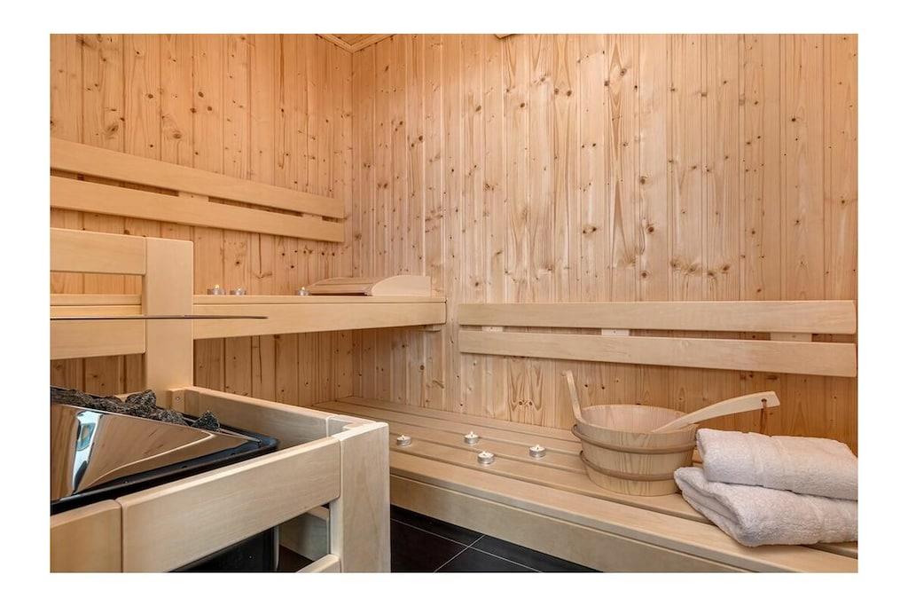 , , Stue(, , Fjernsyn, spisebord, radio), Køkken(, , spisebord, kogeplade, kogeplade, elkedel, brødrister, kaffemaskine, ovn, opvaskemaskine , køleskab, fryser), soveværelse(dobbeltseng, dobbeltseng), soveværelse(dobbeltseng, dobbeltseng), badeværelse(, , toilet, bruser, bruser, håndvask, føntørrer), badeværelse(, , toilet, bruser, bruser, håndvask, føntørrer), loungerum(sauna), Internetadgang, Internetadgang, vaskemaskine, balkon(havemøbler), balkon(havemøbler), varme, havemøbler, parkering, strygebræt, strygejern