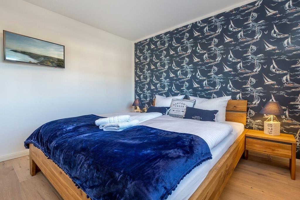 Lejlighedsbygningen Sommerwiese, nyopført i 2021, tilbyder i alt fire ferielejligheder og er ideel til afslappende dage i rolige omgivelser. Ferielejligheden, der ligger i stueetagen til højre, har en sydvendt terrasse og en tilstødende have. Havemøbler, parasol og grill er tilgængelige på terrassen, så du kan afslutte din feriedag med et godt glas vin. Din parkeringsplads og et aflåseligt cykelopbevaringsområde er også tilgængelige udenfor. Den rummelige opholds- og spisestue har et moderne, fuldt udstyret køkken, perfekt til fælles madlavning. Bøger og brætspil er også tilgængelige i opholdsstuen til en hyggelig aften. Soveværelset er møbleret med en komfortabel seng (180 cm x 200 cm) til en god nats søvn. Badeværelset med bruser har indbygget radio og gulvvarme. Efter en lang cykel- eller gåtur kan du finde dejlig afslapning for dine muskler i den infrarøde kabine. Den giver hurtigt hyggelig varme. Lejligheden er udstyret med insektnet. Vær opmærksom på, at kæledyr generelt er tilladt efter anmodning, mod et gebyr og med vores skriftlige bekræftelse.