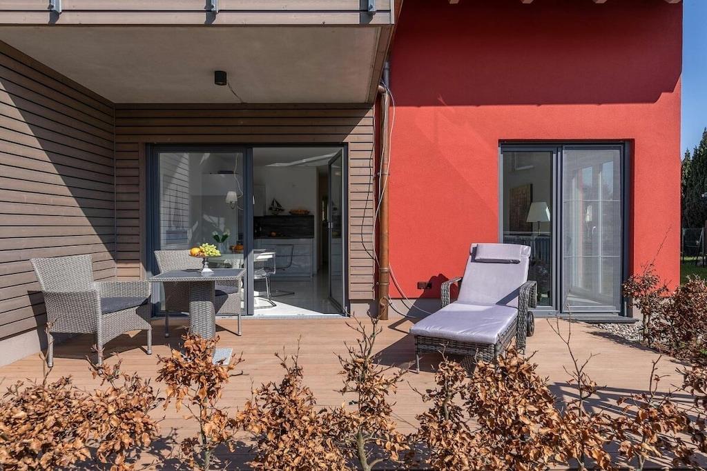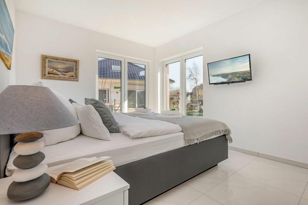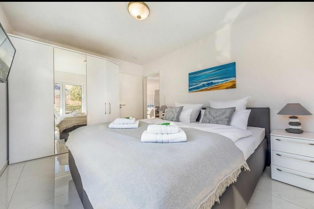 Smuk lejlighed i stueetagen (bygget i 2019) tæt på stranden. Rummelig suite på 54 kvm til to personer. Den lyse lejlighed har et soveværelse og en rummelig opholds- og spisestue. Soveværelse: Dobbeltseng (180 x 200 cm) med to forskellige fasthedsgrader (H2/H3).
